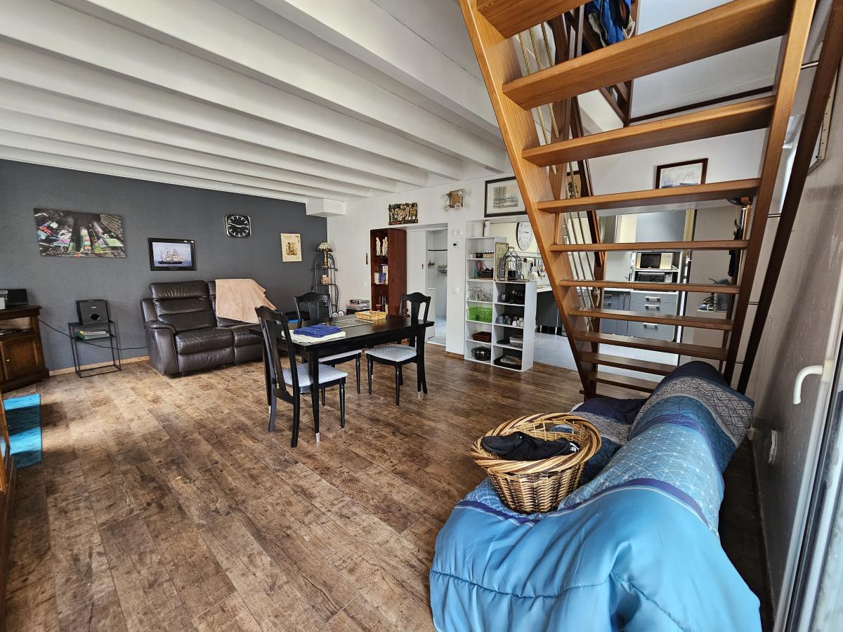 * au rez-de-chaussée : une pièce de vie avec cuisine aménagée et équipée, une salle d'eau avec WC.