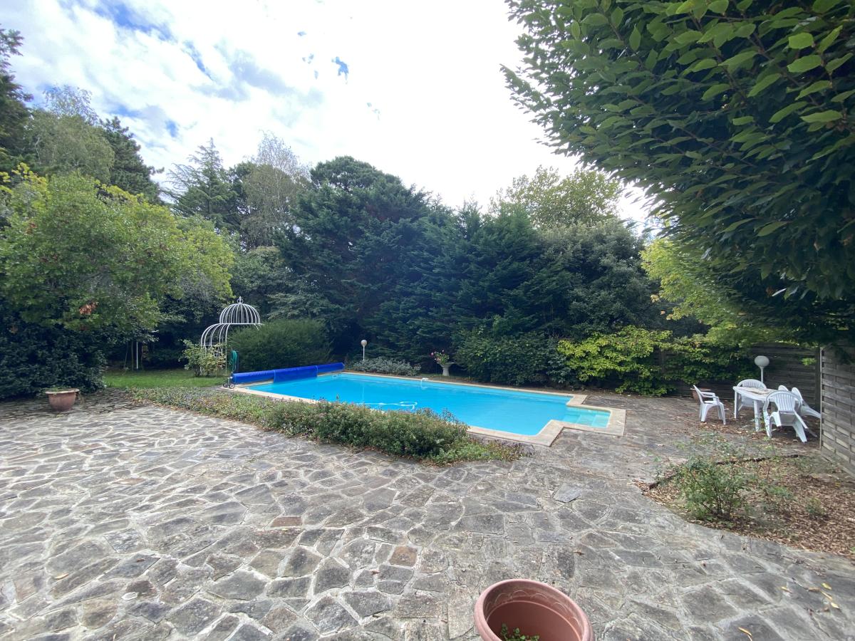 À l’étage, une mezzanine dessert quatre chambres, dont une avec balcon et deux avec cabinet de toilette, ainsi qu’une salle de bains, une salle d’eau. Les extérieurs offrent un cadre privilégié avec une piscine chauffée, une élégante gloriette, un préau en bois et deux abris de jardin, formant un environnement paisible et soigné. DPE: E