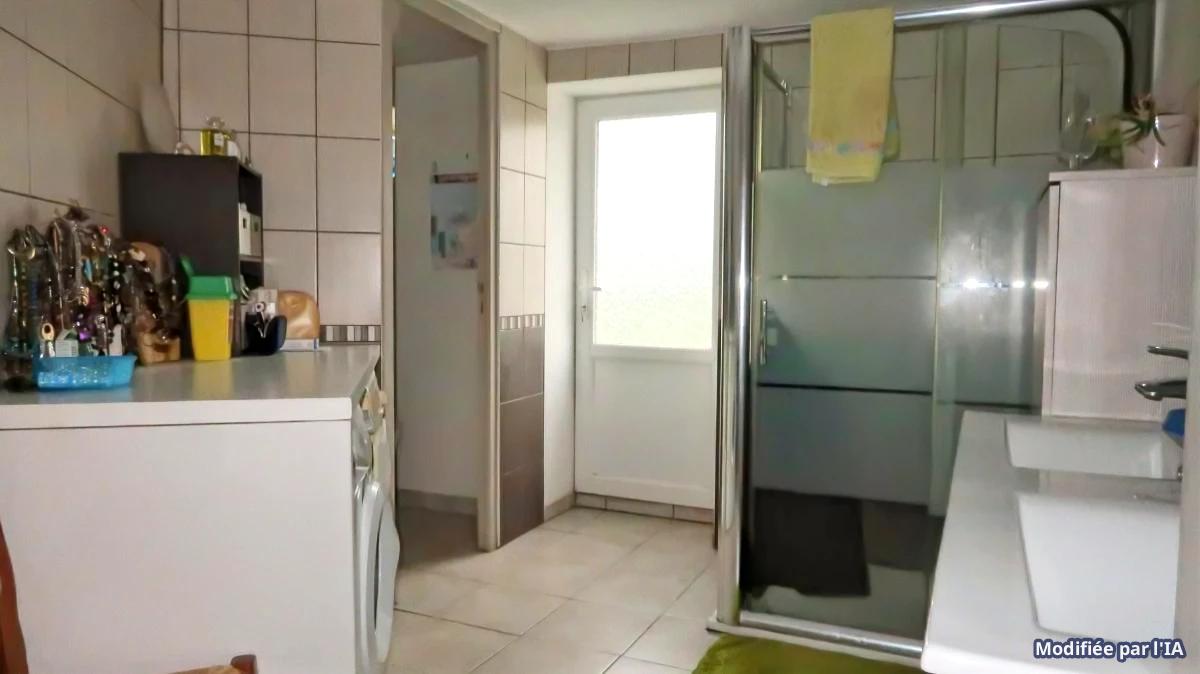 - Au RDC : pièce principale de 60 m² composée d'une cuisine aménagée équipée ouverte sur séjour salon (poêle à Pellets), 1 chambre avec dressing (20 m²), salle d'eau/lingerie (douche, double vasque, machine à laver, sèche-linge), pièce de rangement de 7 M2.