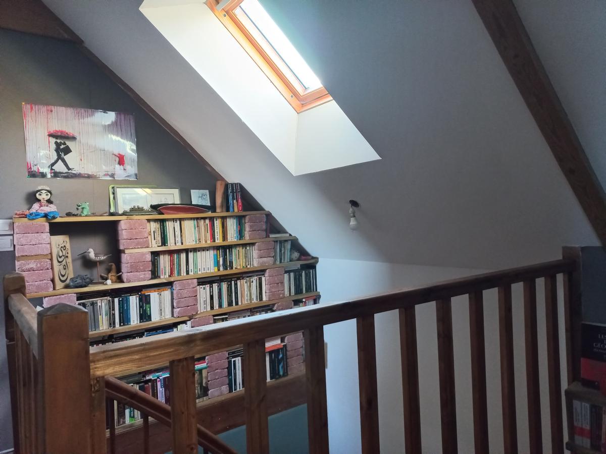 Au 1er étage : couloir desservant deux chambres dont une avec salle de bain, bureau et WC.