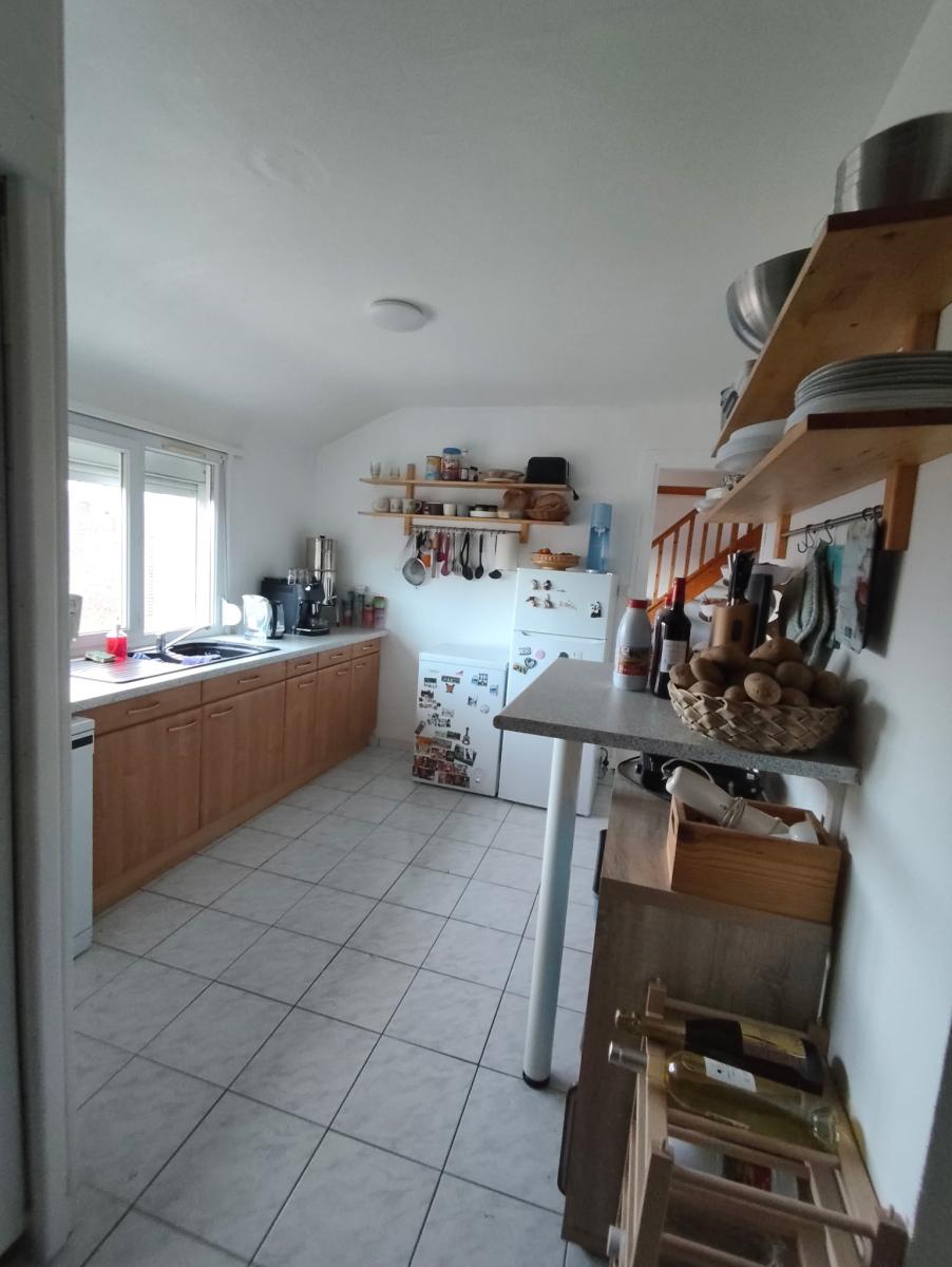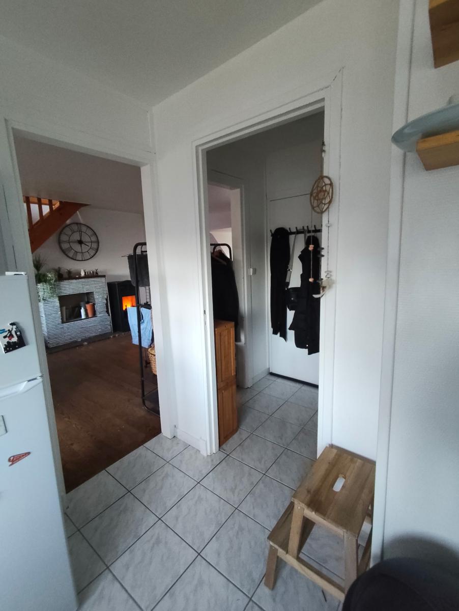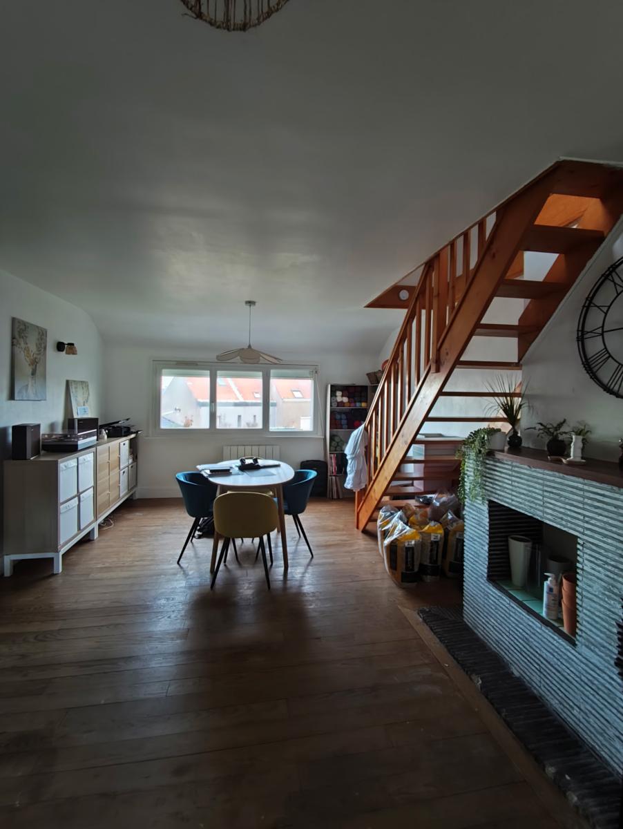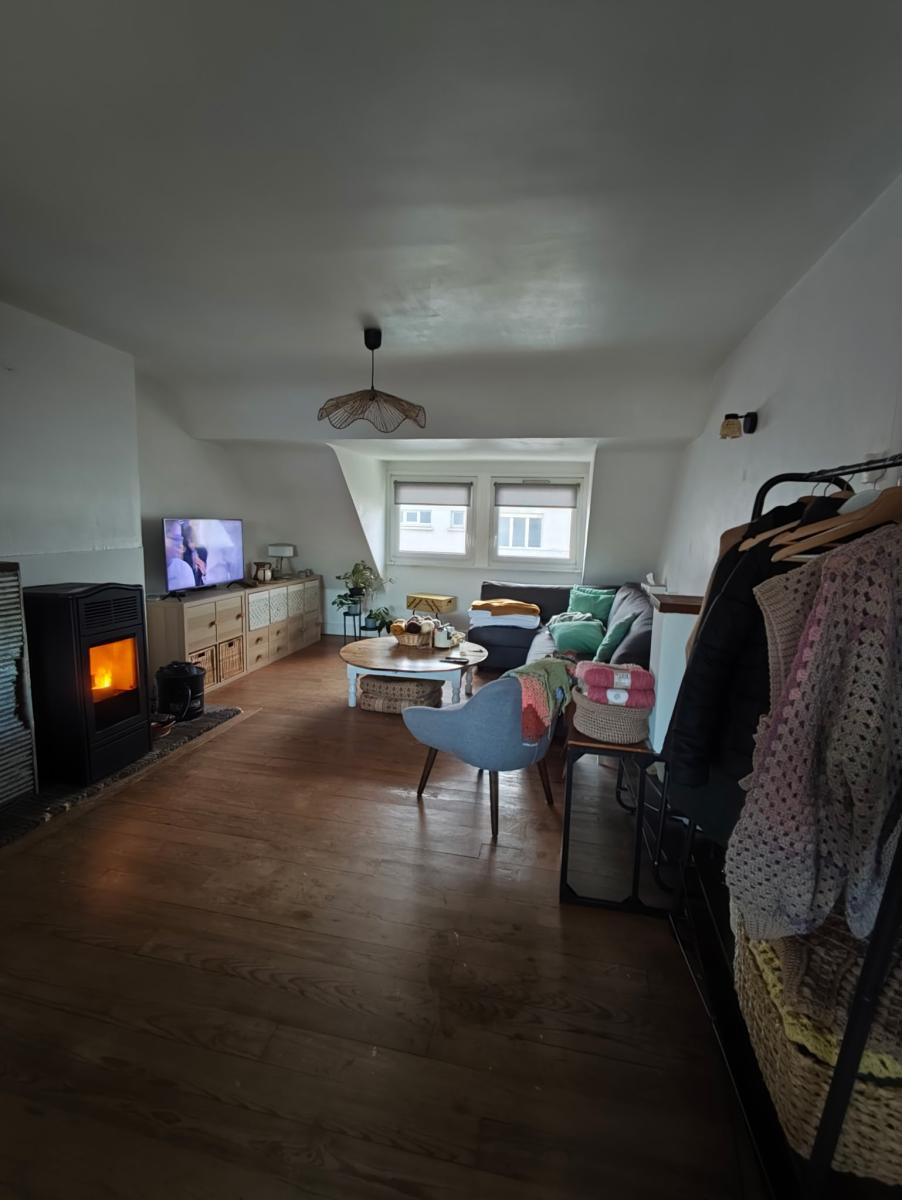 Sur les deux derniers niveaux un appartement en duplex comprenant entrée, wc, séjour de 29m2, cuisine de 11m2, petite salle d'eau, une chambre sous combles de 8m2. Surface habitable d'environ 67m2. loyer de 625€ hors charges.