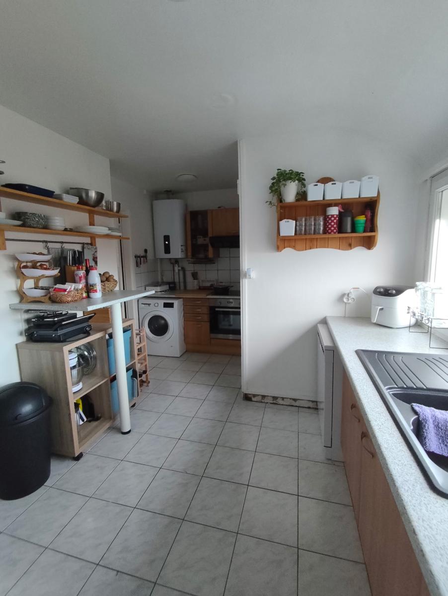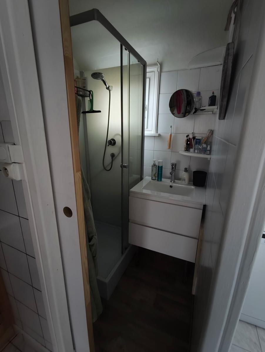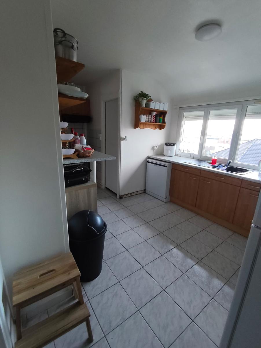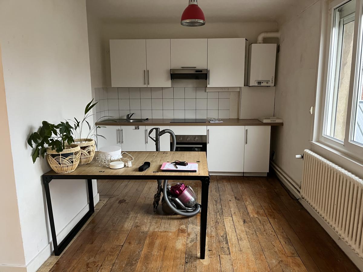 Sur les deux derniers niveaux un appartement en duplex comprenant entrée, wc, séjour de 29m2, cuisine de 11m2, petite salle d'eau, une chambre sous combles de 8m2. Surface habitable d'environ 67m2. loyer de 625€ hors charges.
