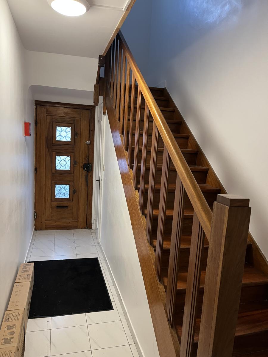 Le rez-de-chaussée comprend un appartement de plain pied avec jardin. On y trouve une entrée sur séjour de 16m2, salle à manger de 16m2 donnant sur jardin, cuisine aménagée de 10,7m2, salle d'eau et wc, une chambre sur rue de 14m2. Surface habitable d'environ 62m2. Logement loué 680€ hors charges.