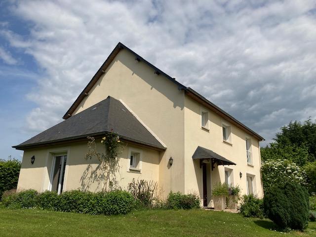 Campagne entre DOZULE et PONT L'EVEQUE, sur 2.000m² de jardin, maison de construction traditionnelle comprenant vaste séjour-salon (env. 60m²) avec cheminée et cuisine américaine aménagée (env.16m²), cinq chambres dont une au rdc, salle de bains, salle de douche. Garage attenant avec grenier au dessus