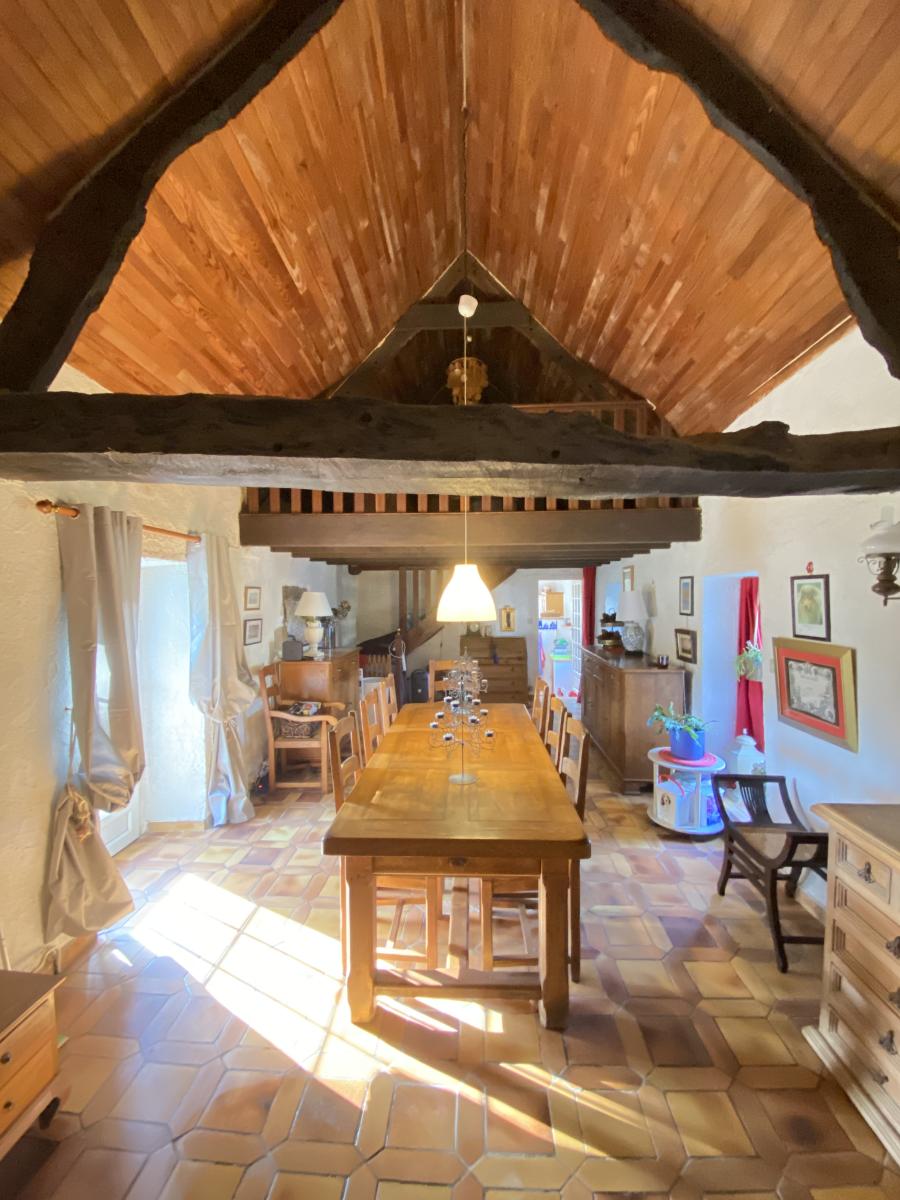 - Rez-de-chaussée : une entrée, WC, un salon avec poêle à bois, une salle à manger avec cheminée, une cuisine, une suite parentale (salle de douches, WC et dressing), une buanderie/chaufferie et un atelier.