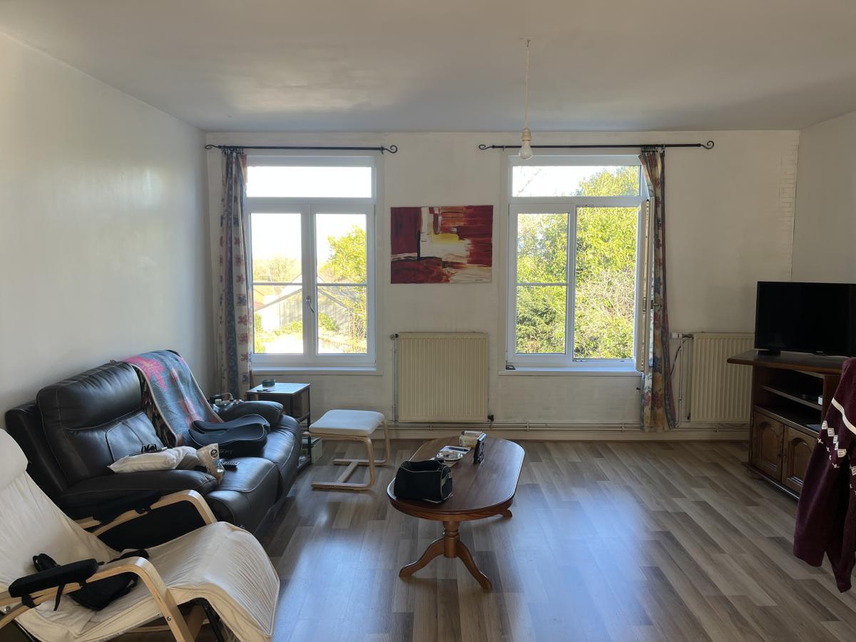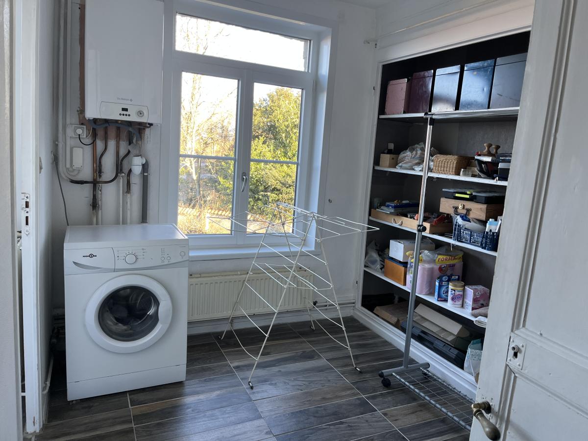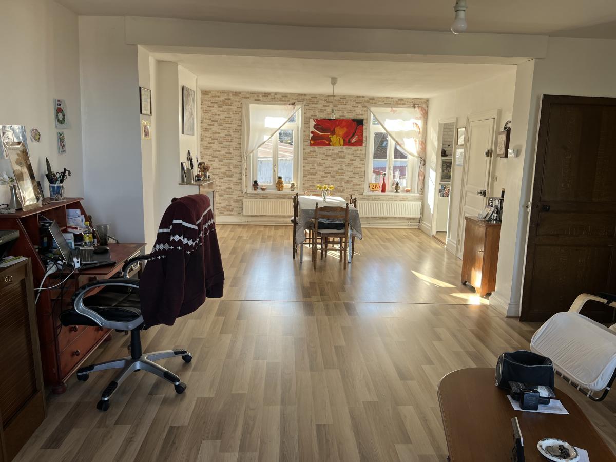 L'étage comprend un appartement occupé d'environ 98m2 avec entrée sur séjour de 39m2, cuisine de 7m2, couloir desservant 2 chambres de 13 et 19m2, lingerie et salle de bains. Chauffage central au gaz de ville. Chaque logement dispose d'un compteur EAU et EDF indépendant.
