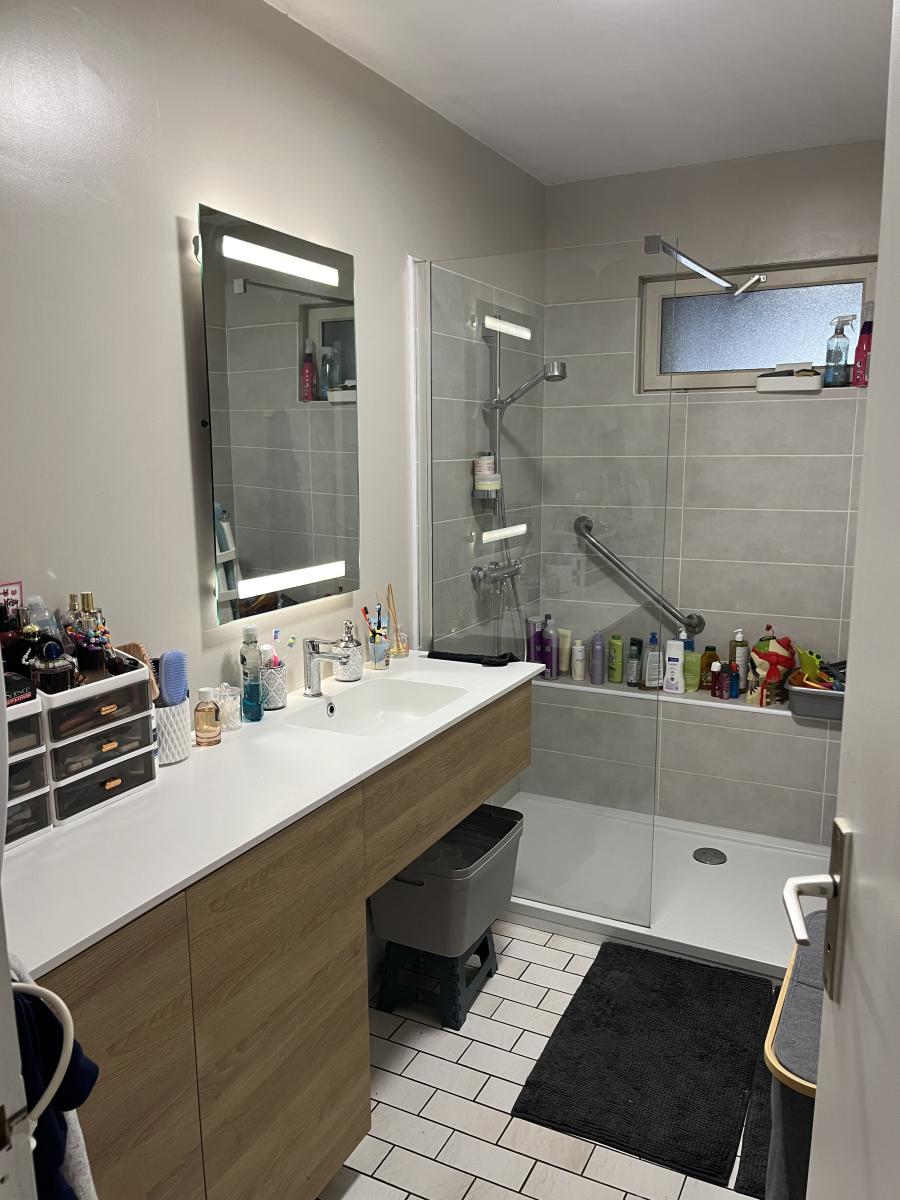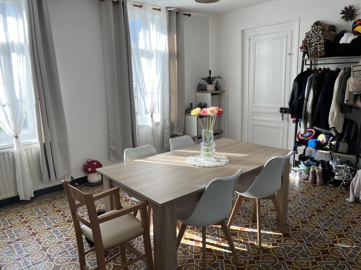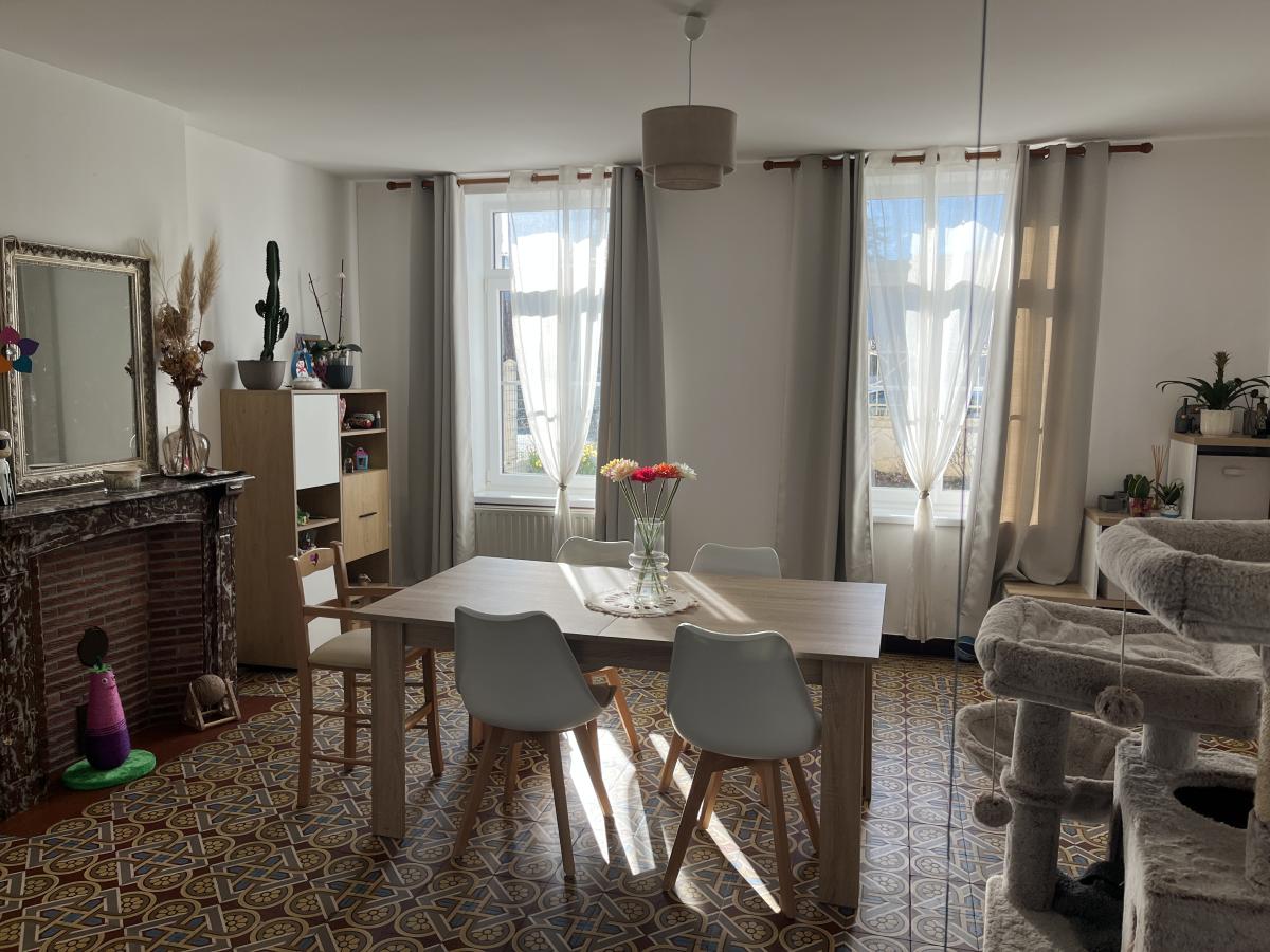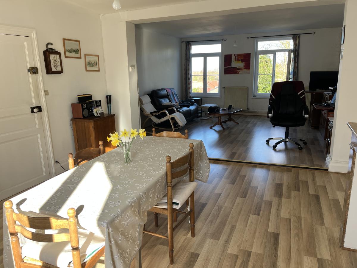 L'étage comprend un appartement occupé d'environ 98m2 avec entrée sur séjour de 39m2, cuisine de 7m2, couloir desservant 2 chambres de 13 et 19m2, lingerie et salle de bains. Chauffage central au gaz de ville. Chaque logement dispose d'un compteur EAU et EDF indépendant.