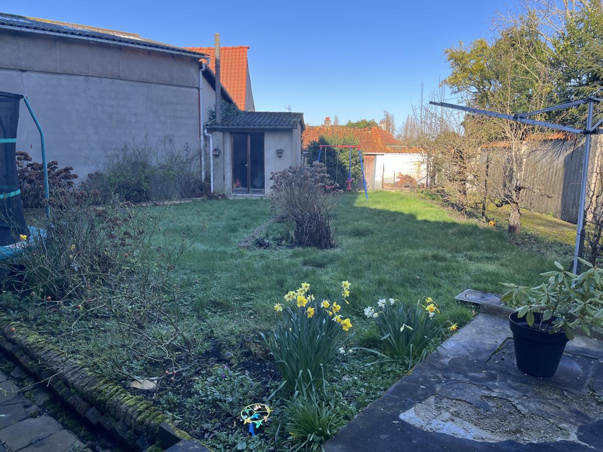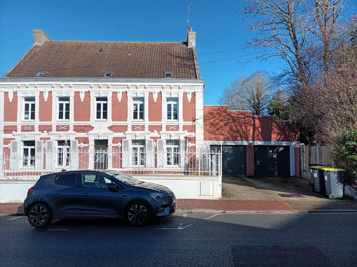 En centre ville, à deux pas du marché, BEL IMMEUBLE ancien actuellement loué en deux grands appartements. Le rez-de-chaussée, vendu libre d’occupation est un logement avec jardin et garage, d'environ 100m2 habitables, entièrement de plain pied. Il comprend après le hall commun, une salle de séjour de 43m2, cuisine aménagée de 15m2 donnant aussi sur un garage communicant avec le logement, couloir desservant 2 chambres de 12 et 15m2, salle d'eau, wc. Beau jardin sur l'arrière privatif, chauffage central au gaz individuel.
