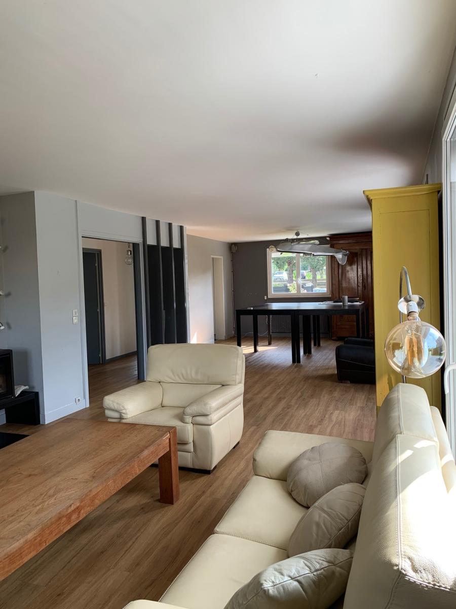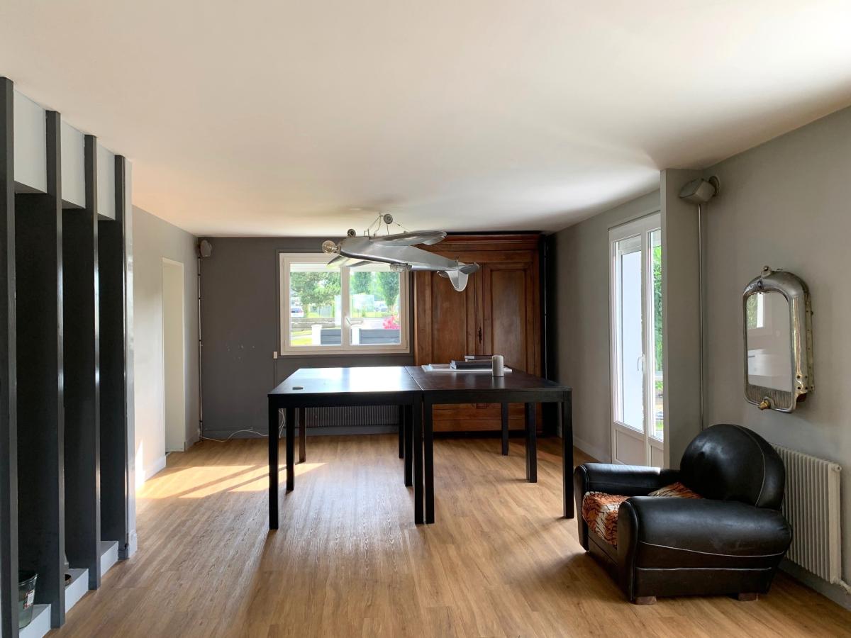 La maison s’ouvre sur une entrée accueillante, menant à une vaste pièce de vie de 70 m², baignée de lumière, avec accès direct à une grande terrasse. Vous profiterez également d’une cuisine généreuse, attenante à un cellier, d’un dégagement avec placard, ainsi que d’un WC indépendant.