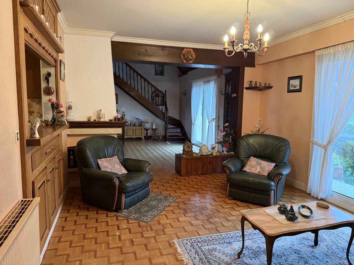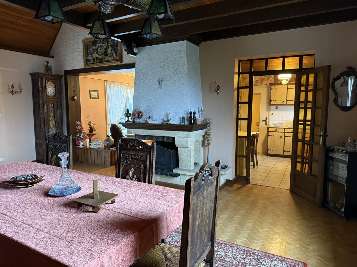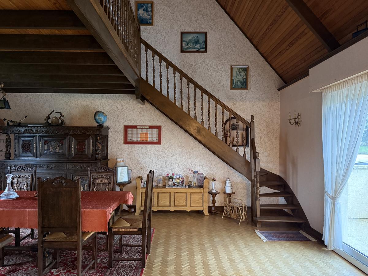 Sur terrain clos de 953 m2, agréable pavillon sur sous-sol complet, en pierres et parpaings sous ardoises comprenant :
