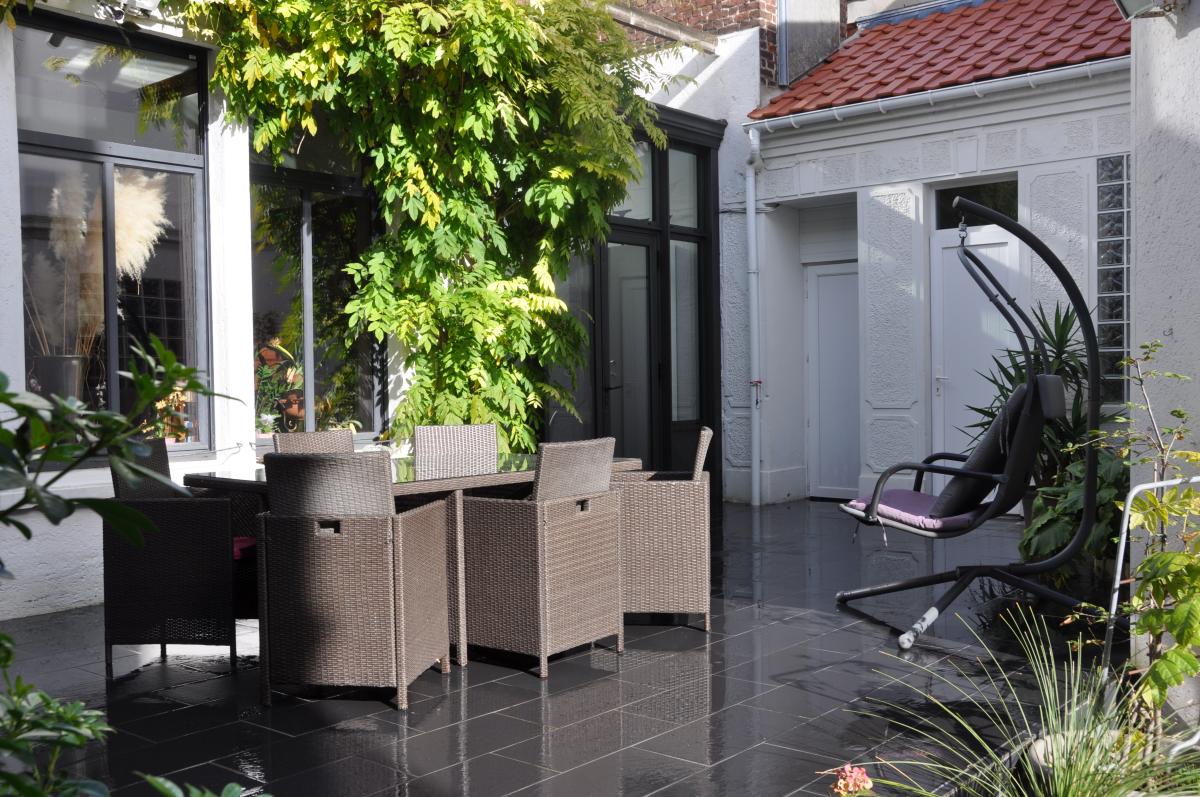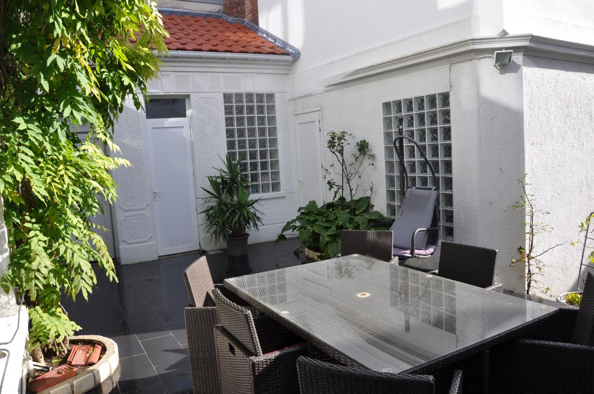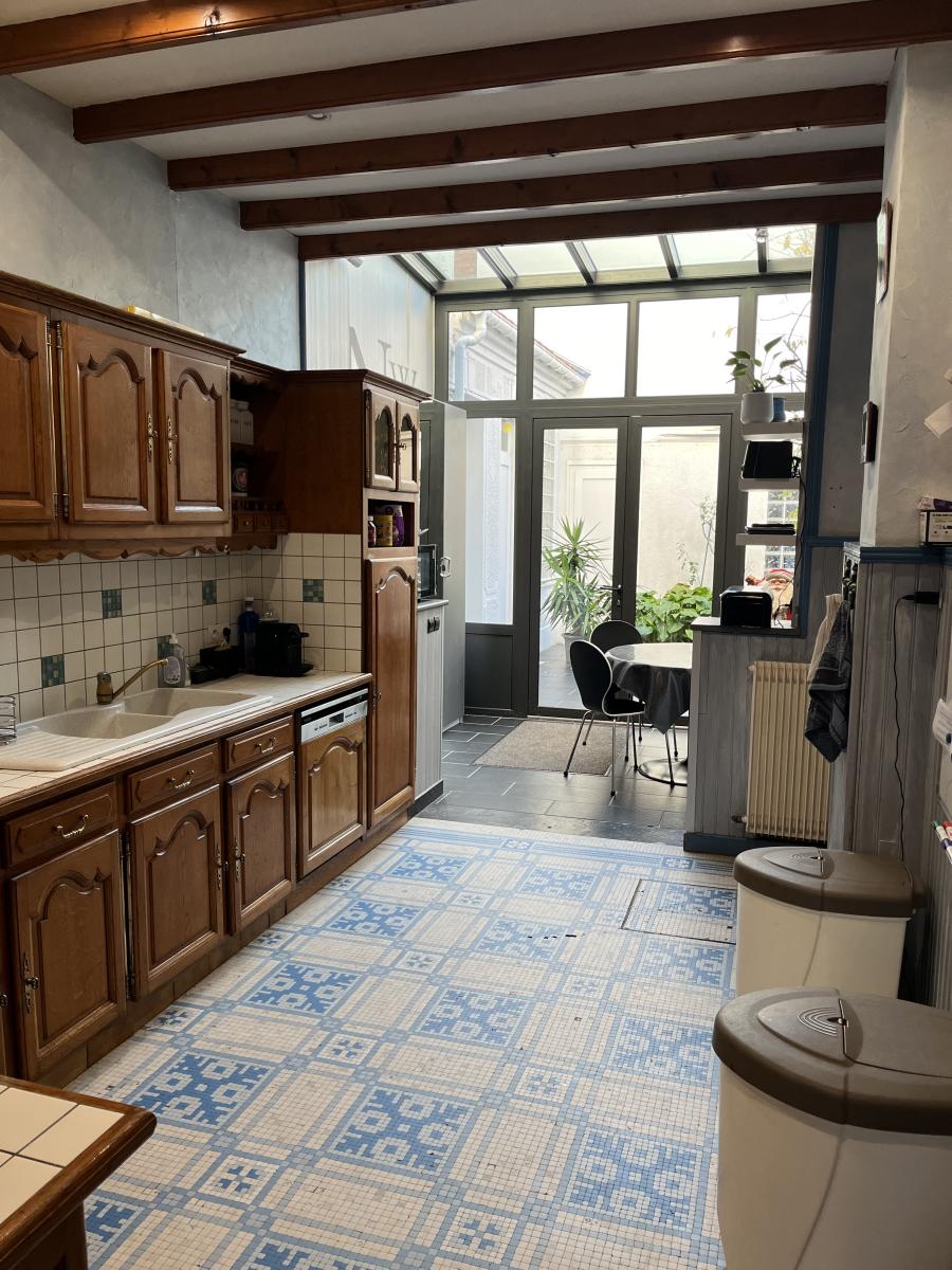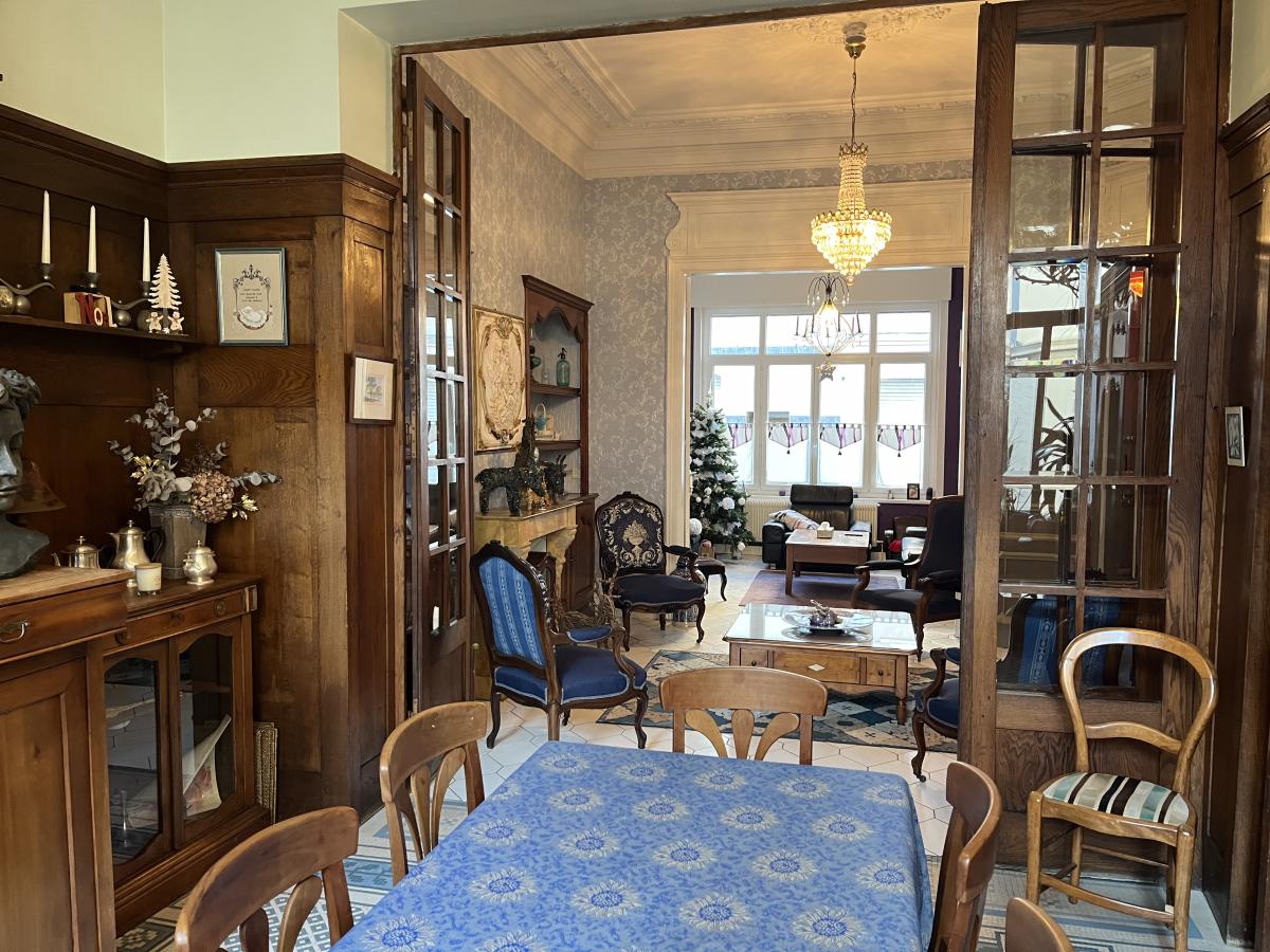 Située en plein centre ville, VASTE MAISON familiale avec le charme de l'ancien, 210m2 habitables, cour et accès véhicule, garage, ascenseur intérieur. La construction datant de 1895, comprend large hall de 9m2, pièce de vie d'environ 50m2, cuisine avec coin repas et verrière sur l'arrière de 22m2, wc, bureau avec ascenseur fonctionnel desservant les étages. Au 1er niveau palier, une chambre de 16m2, une vaste chambre de 30m2, salle de bains et wc. Au second palier, salle de bains et 2 chambres de 14 et 23m2, lingerie 10m2, wc. Grand garage dans la cour, espace extérieur avec terrasse et avec accès sur rue arrière. Cave, double vitrage pvc partout, chauffage central au gaz.