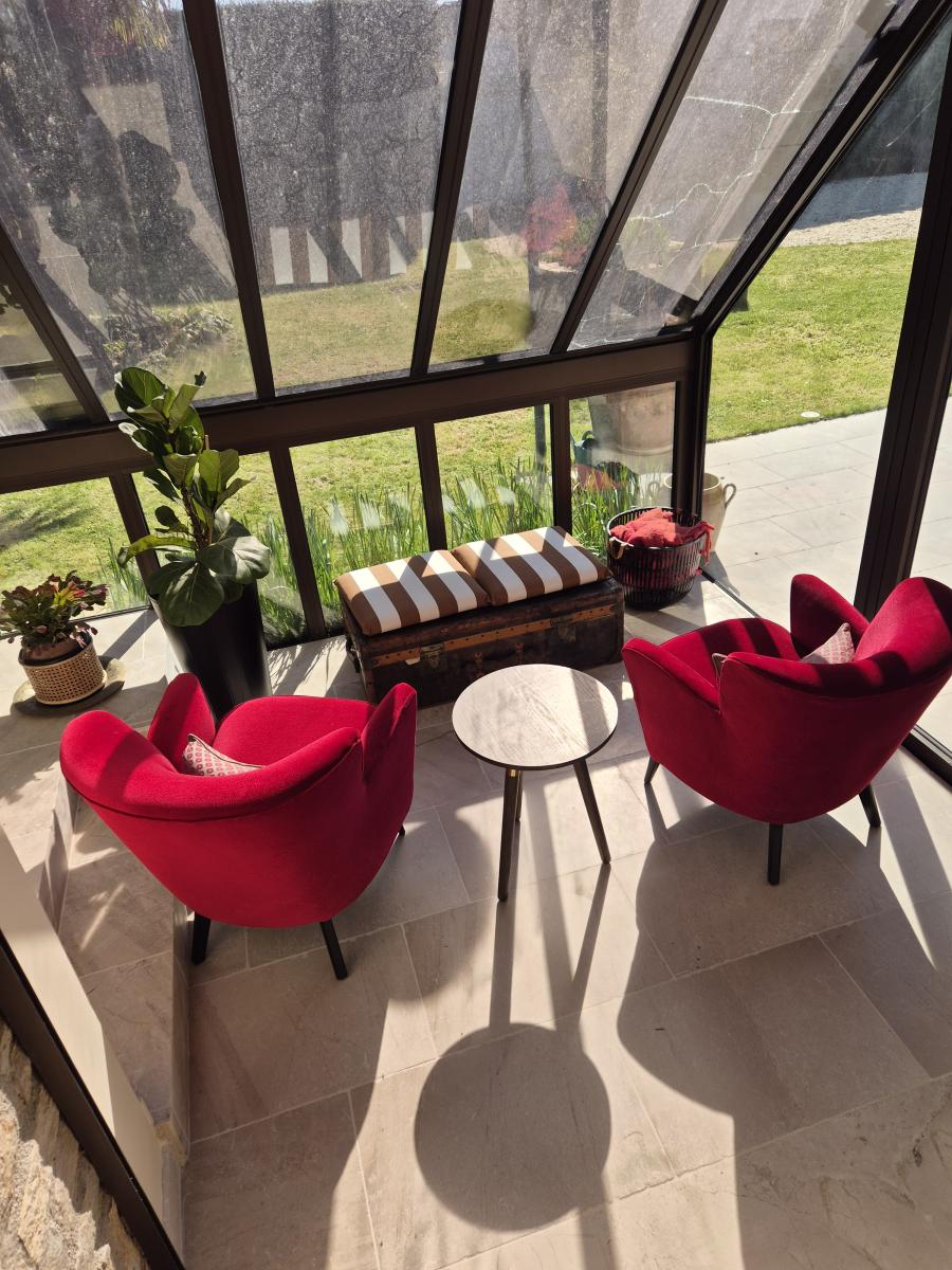 La véranda apporte luminosité et confort d'hiver grâce à une exposition idéale