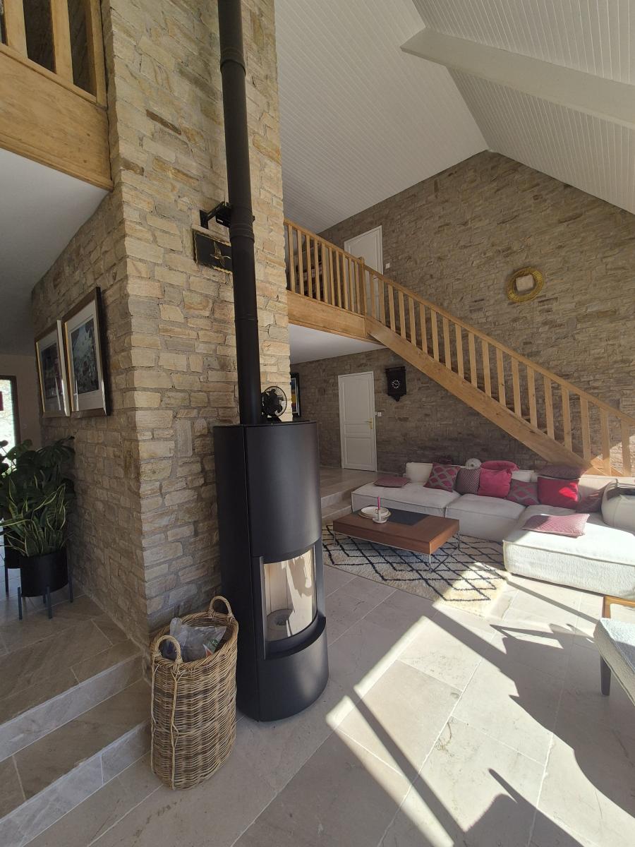 Les travaux de rénovation ont été faits avec des matériaux nobles. Le chauffage est assurée par une chaudière neuve (gaz de ville) et un poêle à granulés. La domotique est présente dans la maison pour un quotidien plus facile.