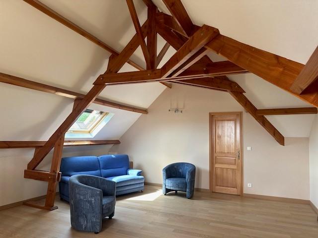L'étage desservi par deux escaliers est composé d'une grande mezzanine, une chambre avec salle de bain attenante, une deuxième grande chambre, et possibilité d'aménager une troisième chambre.