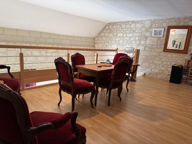 En rdc, une cuisine aménagée et équipée de 17m2, un séjour de 31m2 sur parquet avec cheminée, une salle à manger toit cathédrale et vue sur la campagne, suite parentale de 21m2 avec salle d'eau à rafraîchir., buanderie, wc.