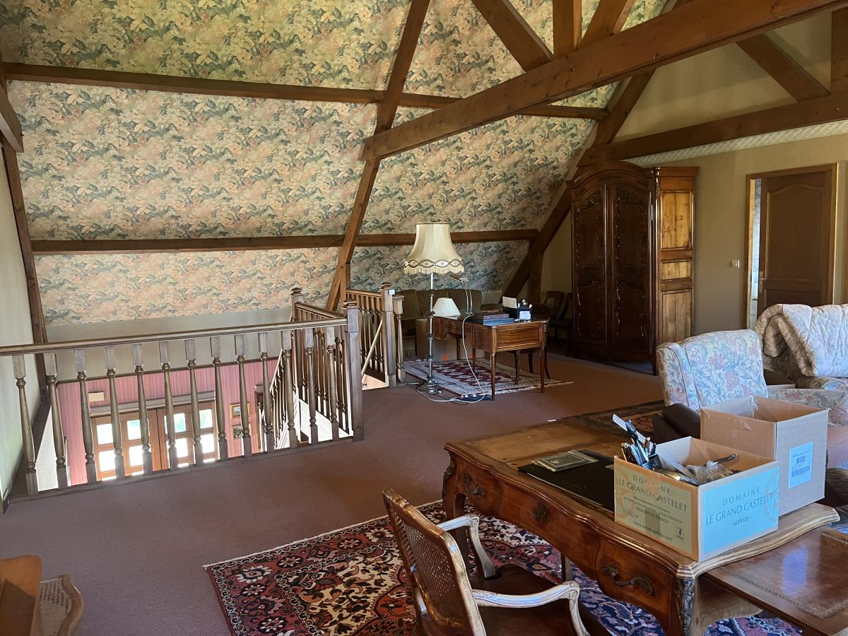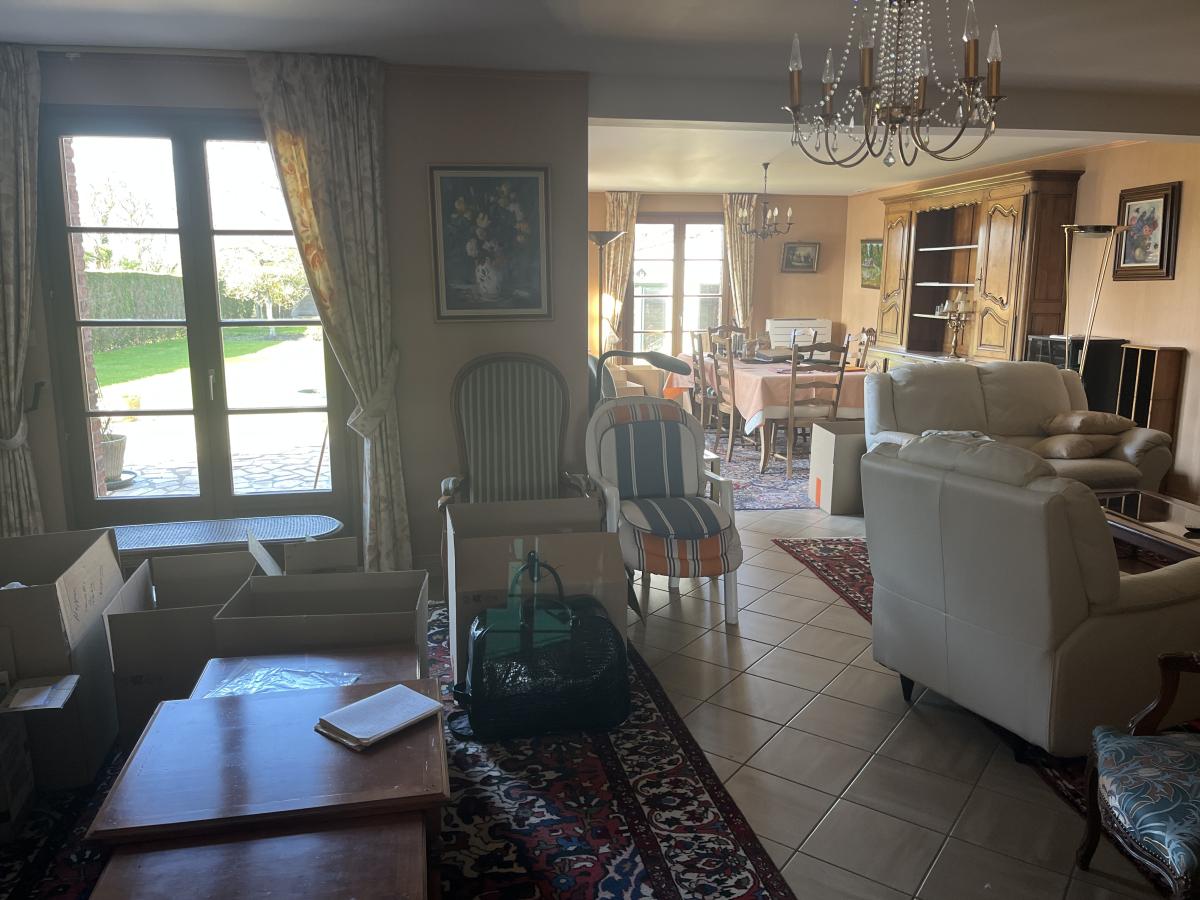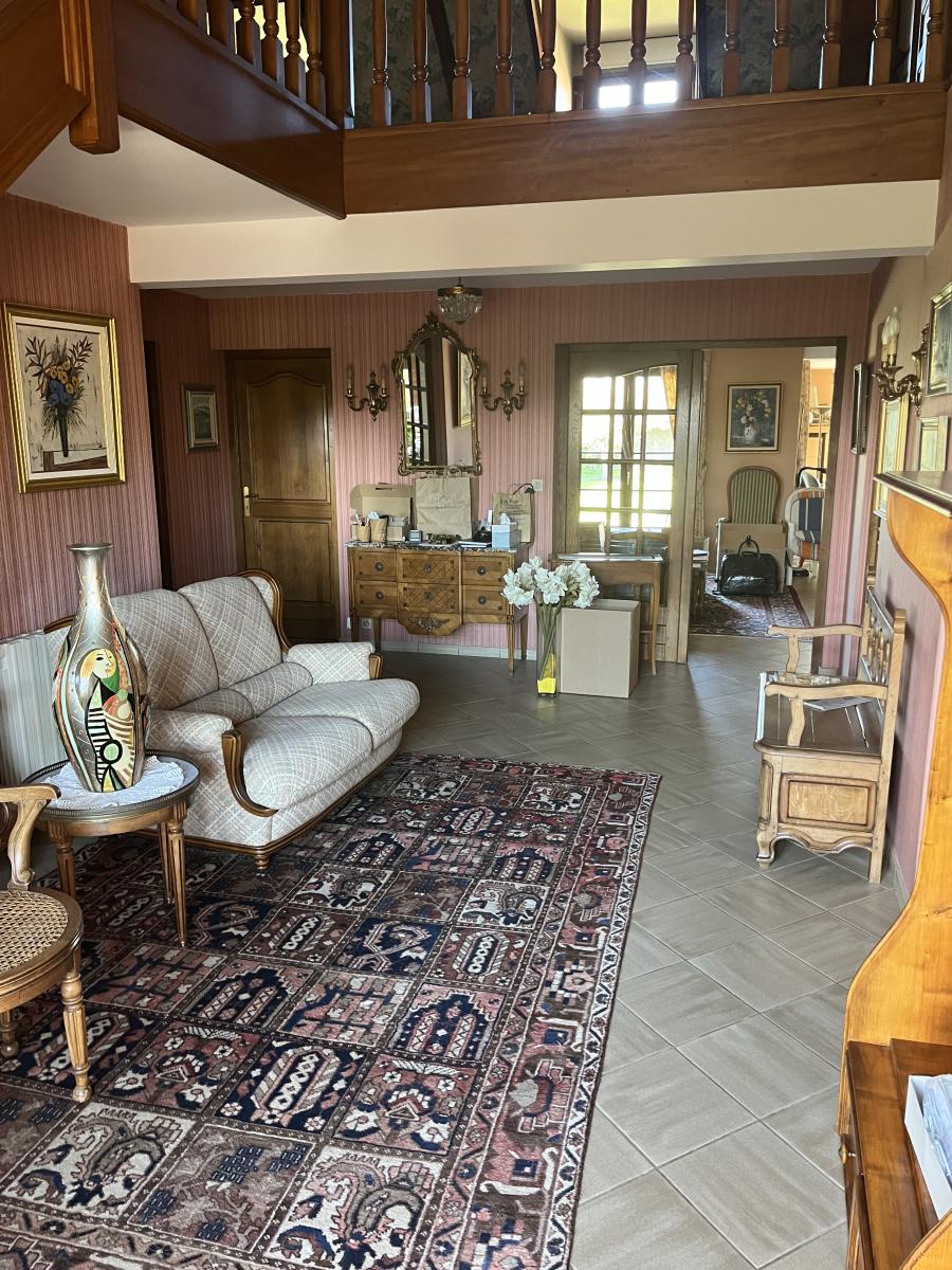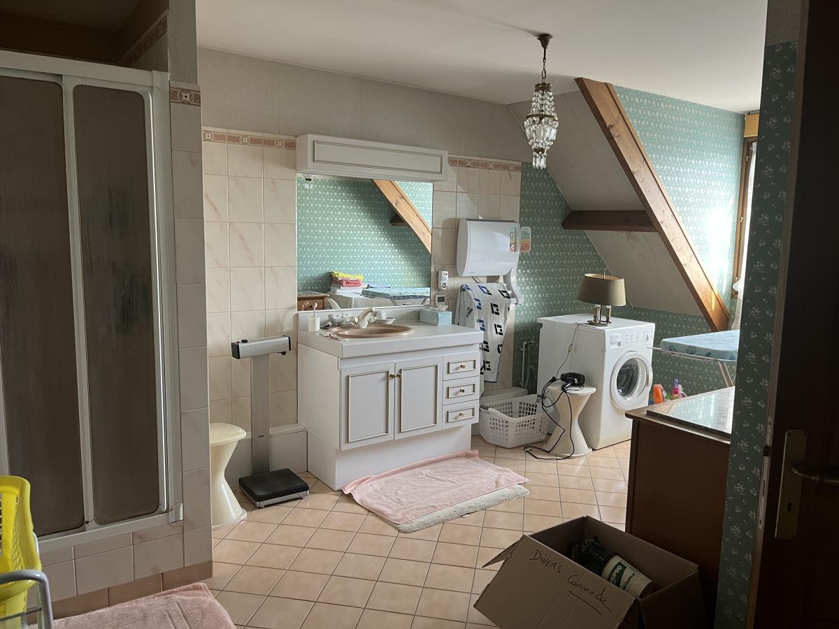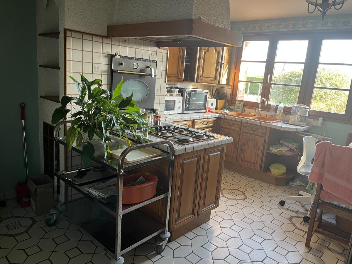 Campagne toute proche de CALAIS, BELLE CONSTRUCTION INDIVIDUELLE de 1989 comprenant large hall d'entrée de 23m2 avec escalier et desservant notamment wc, vestiaire et dressing. Le séjour de 51m2 est orienté sur l'arrière et donne sur le jardin côté sud-ouest. Le rez de chaussée comprend aussi une cuisine de 16m2, une grande chambre de 16m2, salle de bains de 14m2 et garage traversant vers jardin. A l'étage vaste pièce en mezzanine qui dessert 2 chambres de 17m2 environ, une salle de bains de 16m2 avec wc et un grand grenier aménageable, le tout sur dalle béton. Surface habitable d'environ 235m2. Chauffage électrique et par pompe à chaleur air-air, assainissement individuel.