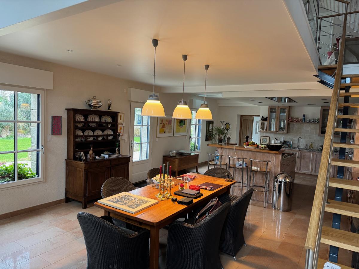 Maison neuve construite en 2010. Pierres apparentes extérieures et confort moderne à l intérieur et grande luminosité, ouverture sur grand jardin bien entretenu. Grande cuisine et salle à manger avec cheminée, salon séparé avec insert, 3 chambres à coucher avec une suite parentale avec dressing, 2 salles de bains, dont une avec baignoire avec jets bouillonnants et douche Hammam, 4 toilettes, cave à vins et grand grenier. Chauffage au sol par géothermie, garage.