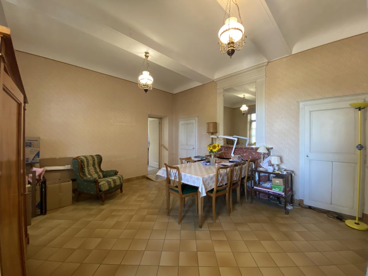 Ce bien comprend en rdc une entrée, une salle à manger avec cheminée, un salon, une cuisine et ses dépendances, un espace avec point d'eau et une chaufferie avec chaudière gaz de ville )