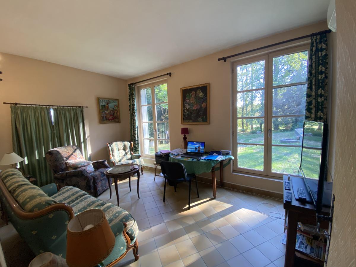 La propriété s’étend sur environ 7 hectares, dont environ 5 hectares en fermage, 1 hectare de prairie hors fermage et un hectare de bois, avec un grand bassin attenant à la maison.