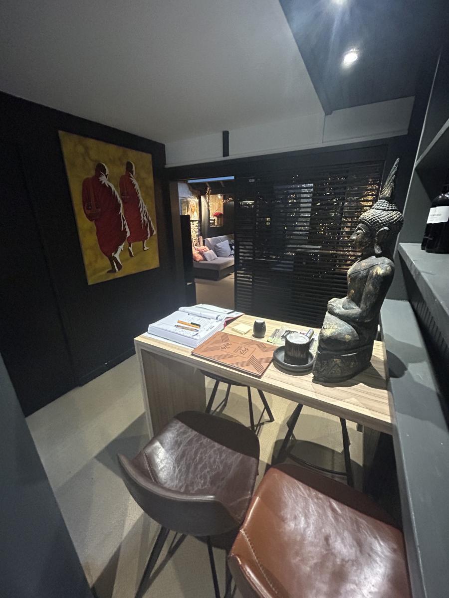 - Un premier appartement de 140m²dont toutes les peintures ont été fraichement refaite: une entrée avec placard, un espace de vie avec une dalle à manger et un salon, un espace bureau avec placard, une cuisine fermée, aménagée et équipée, un WC.