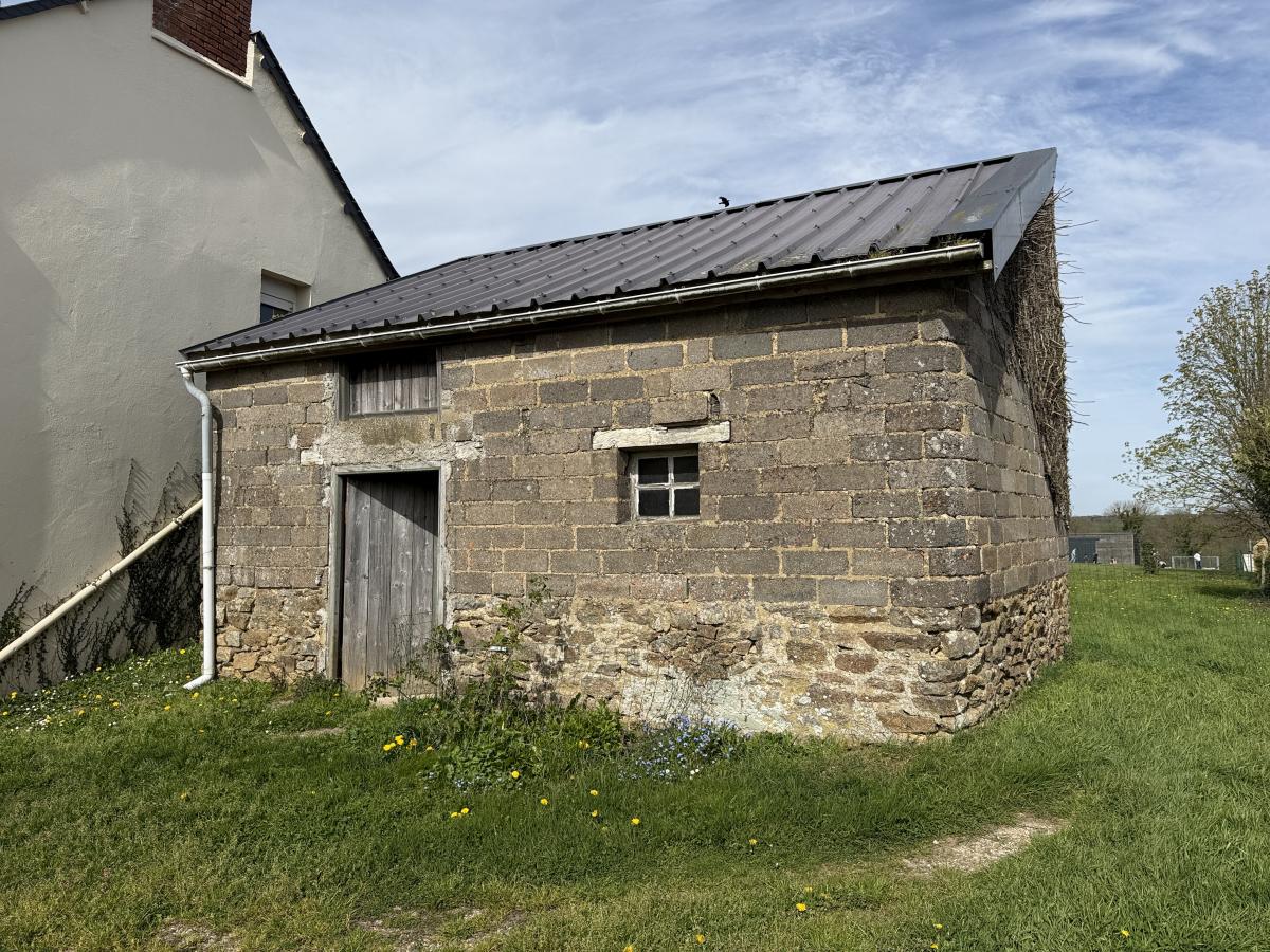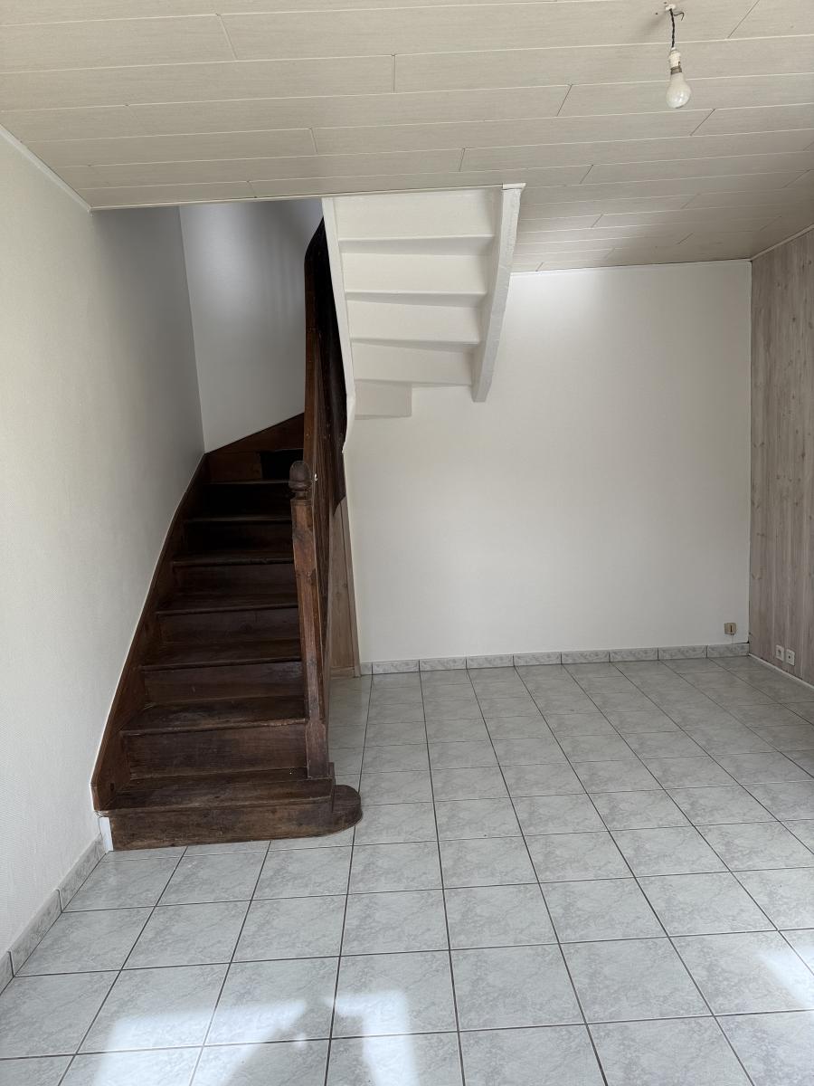 Maison mitoyenne en fond d'impasse, comprenant une pièce de vie en RDC (cuisine/salon), une chambre à l'étage, salle d'eau et wc ; grenier au-dessus. Bâtiment à usage de débarras; cour et jardinet. L'ensemble sur 212 m2 de terrain.