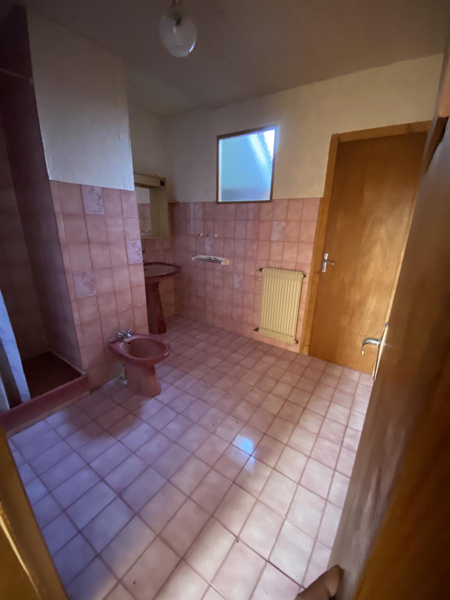 Rez-de-chaussée : entrée, couloir desservant une salle d’eau, toilettes, buanderie/chaufferie, cuisine, salon et chambre en enfilade.