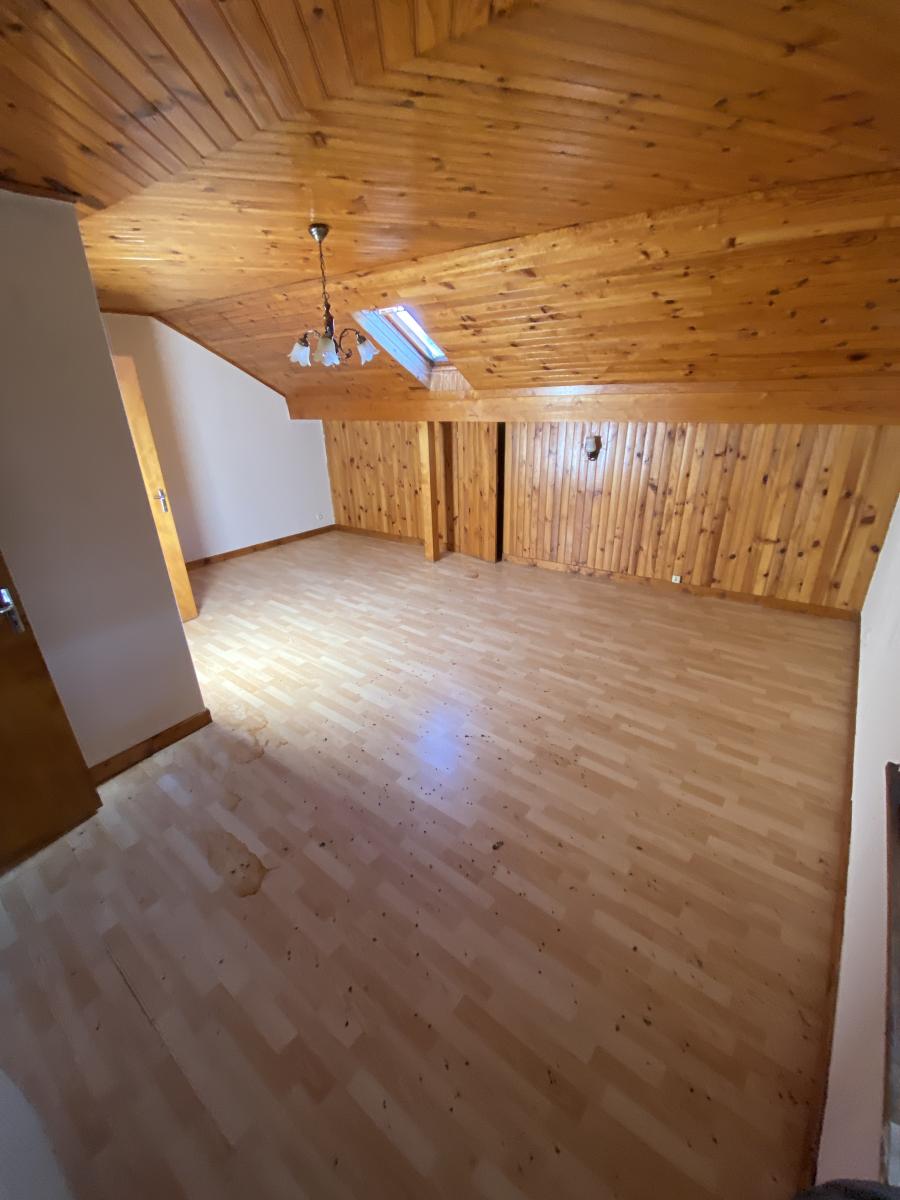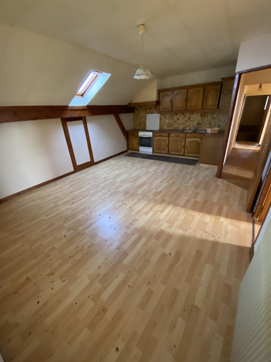 Premier étage : cuisine/séjour, salle d’eau, toilettes et deux chambres.
