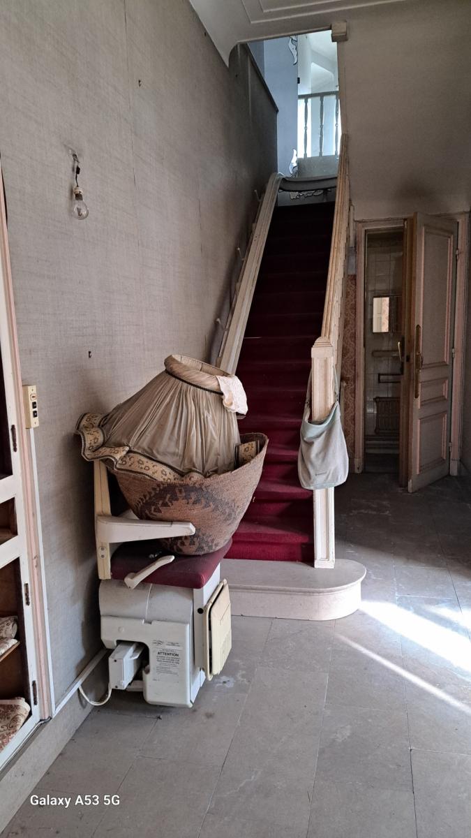 Accessible par l'escalier de l'entrée on trouve au deuxième et troisième étage un appartement avec séjour de 28m2, deux chambres, salle de bains et salle d'eau, cuisine et wc ainsi que deux chambres, bureau et salle de bains au troisième étage. Cave, jardin de bonne surface sur l'arrière (environ 130m). Surface habitable d'environ 371m2. Cette maison nécessite d'importants travaux de remise en état mais offre un potentiel énorme pour en refaire une belle maison familiale ou plusieurs logements.