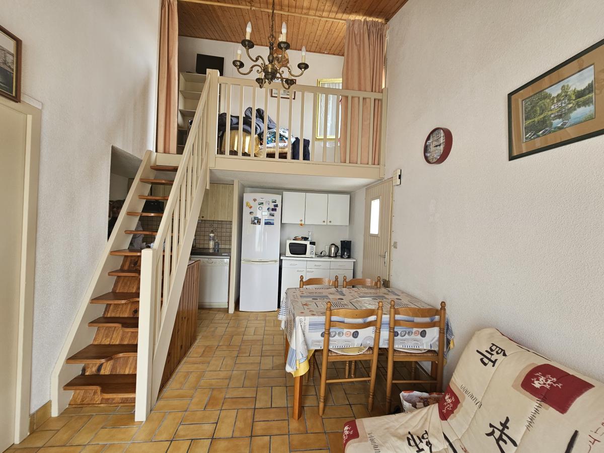 A 5 minutes à pied de la plage, proche du centre ville et des commodités, et au sein d'une copropriété, pavillon de 37 m² loi carrez, composé d'un séjour-salon avec coin kitchenette, d'une chambre avec placard, salle d'eau- wc.