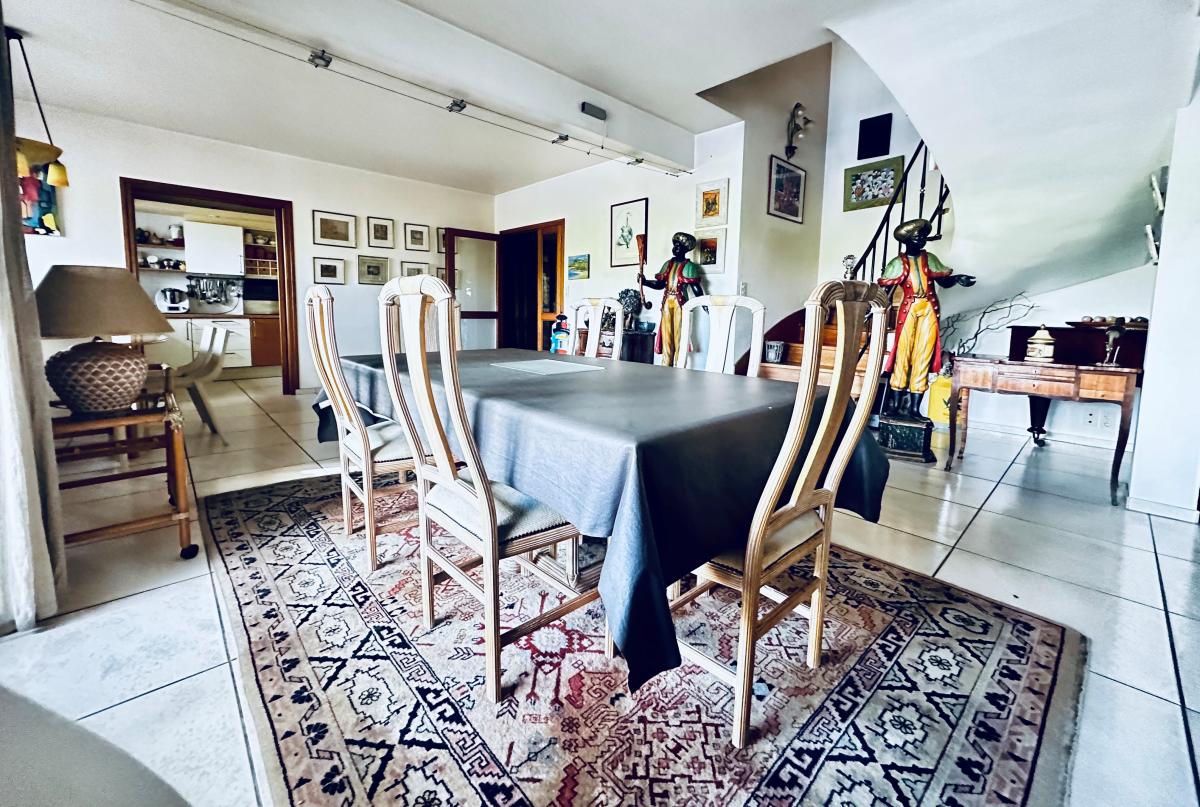 Elle se compose: au rdc, entrée avec placards, wc avec lave main, vaste salle/ salon lumineux avec poêle à bois d'environ 60m² ouvert sur une grande véranda donnant vu sur la rivière , cuisine ouverte aménagée et équipée donnant sur un cellier/buanderie accès garage direct. suite parentale avec pièce dressing , salle de bain + accès véranda .