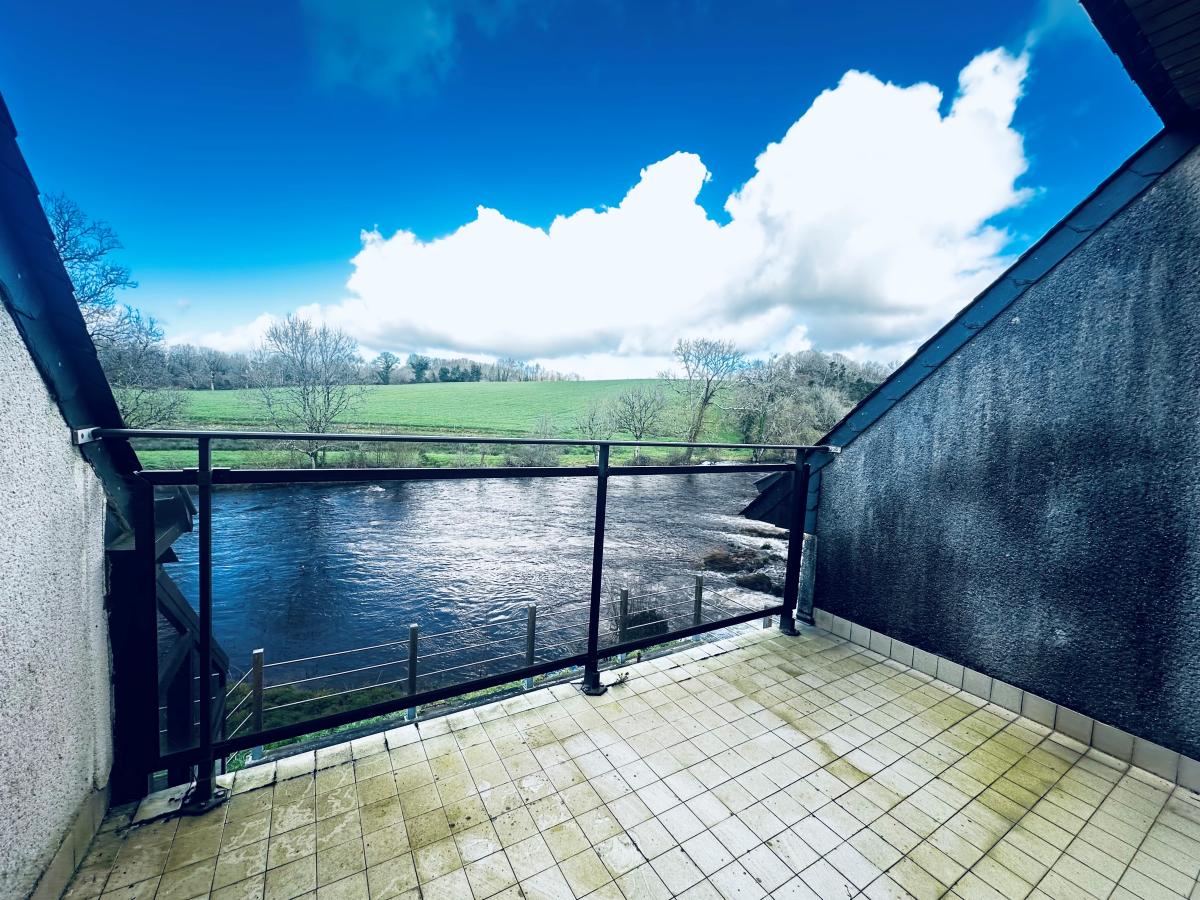 A l'étage, belle mezzanine, chambres avec placards dont 2 sur terrasses privatives donnant sur la rivière, un bureau wc, salle de bain . Chauffage électrique.