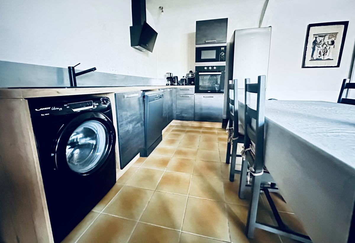 De plus , il y a une autre maison traditionnelle d'environ 114m² au fond de la propriété, actuellement louée sur un étage car maison divisée en deux logements , appartement type T3 ( bail locatif 3 ans) . elle se compose : deux garages en rez de jardin: