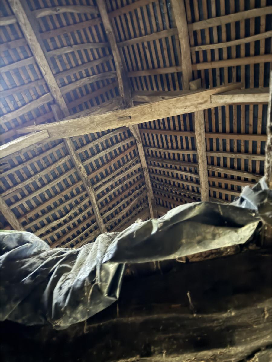 Bâtisse en pierres sous ardoises naturelles, indépendante, sur terrain de 480 m2 comprenant une pièce cheminée et grenier au-dessus, grange et appentis.