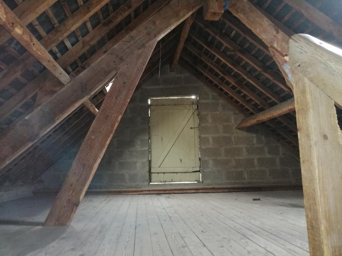 - au rez-de-chaussée : entrée, bureau, cuisine simple avec cheminée à foyer ouvert, salon/séjour, WC