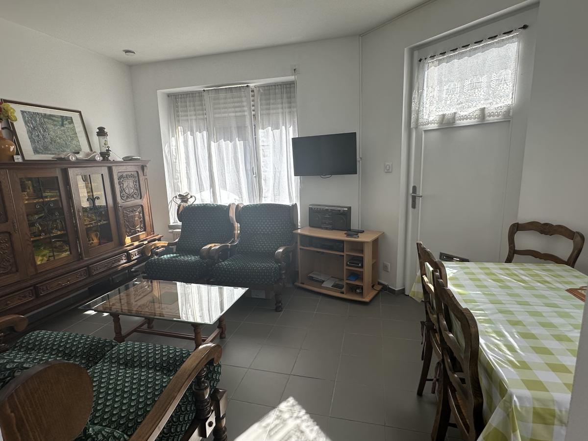 Elle se compose au rdc d'une pièce de vie, d'une cuisine aménagée séparée, d'une salle d'eau et de WC indépendants; à l'étage un palier distribue une chambre de 14 m² et une 2ème pièce de 6.5 m².