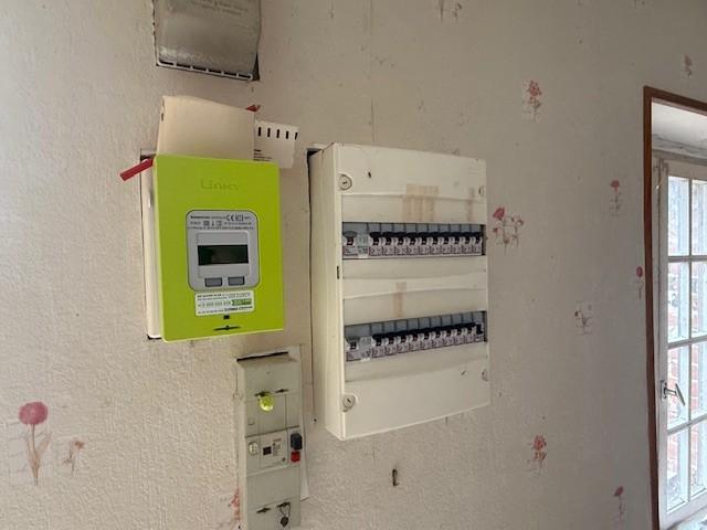 Bâtiment en briques à la suite. Assainissement individuel type fosse septique à refaire.