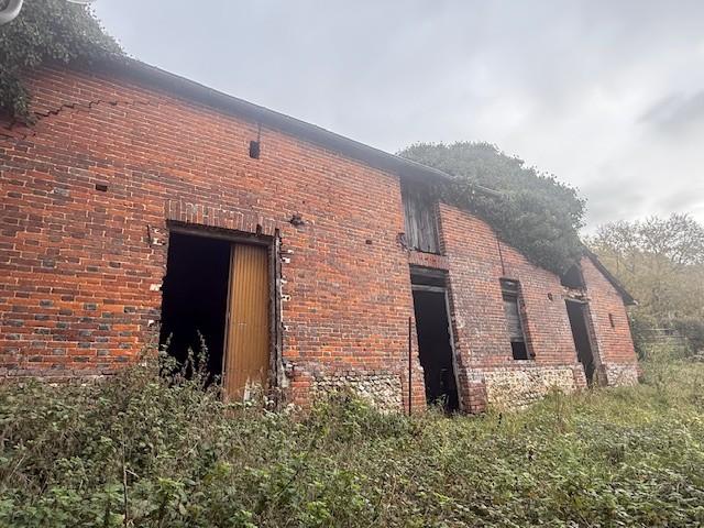 Orbec, route de Lisieux, maison d'habitation construite en briques et silex et couverte en ardoises à rénover comprenant :