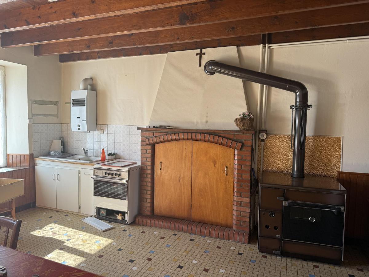 Longère indépendante en pierres et terre composée au rez-de-chaussée : une cuisine avec une cheminée ouverte, deux grandes chambres sur parquet, salle d'eau, wc, buanderie avec cheminée. Sur l'arrière un cellier en terre battue et grenier au-dessus. Hangar et nombreuses dépendances. Terrain à délimiter par géomètre pour environ 2600 m².