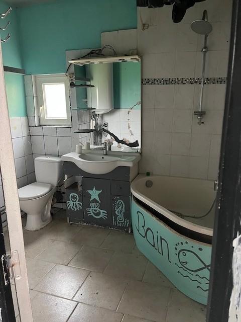 - rez-de-chaussée : salon, cuisine, salle de bains avec wc;