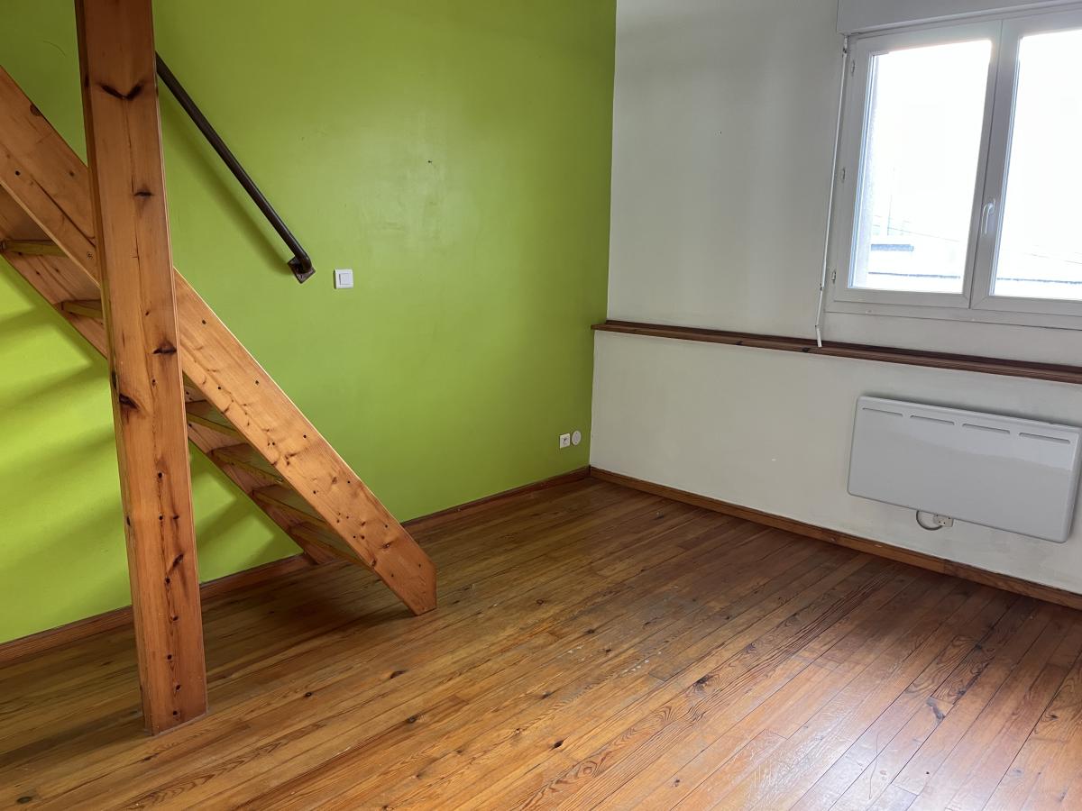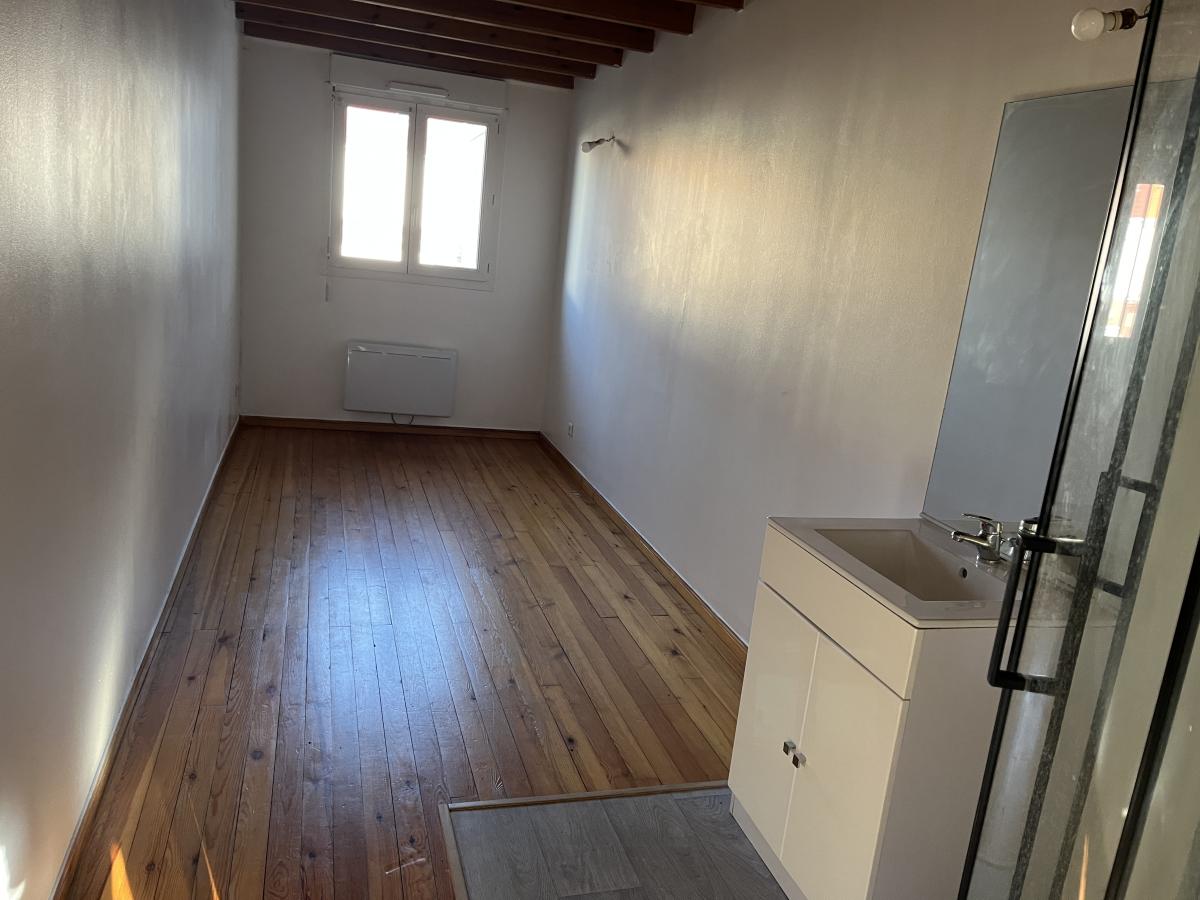 Rue calme proche Boulevard Gambetta, MAISON de ville en bon état idéale premier achat ou investisseur. Le logement comprend séjour sur rue de 19.65m2, cuisine de 11m2, wc. Au 1er étage une chambre de 12,4 m2 avec coin eau ouvert (douche et lavabo) une une autre chambre de 15m2 avec une salle de bains au dessus en mezzanine. Surface habitable d'environ 67m2, cour d'environ 20m2 et petite dépendance. Chauffage électrique et tout à l'égout.