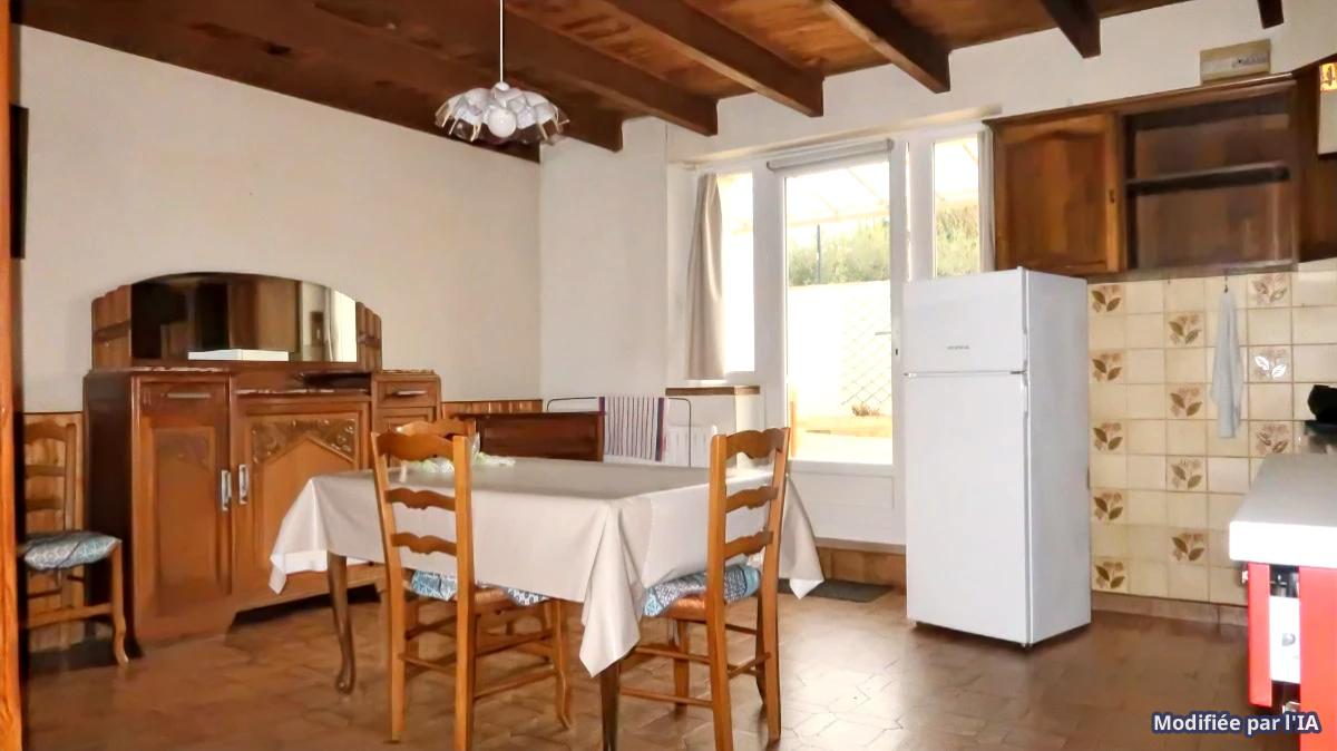 Au rez-de-chaussée : une cuisine salle à manger, un salon, une salle d'eau, un WC.