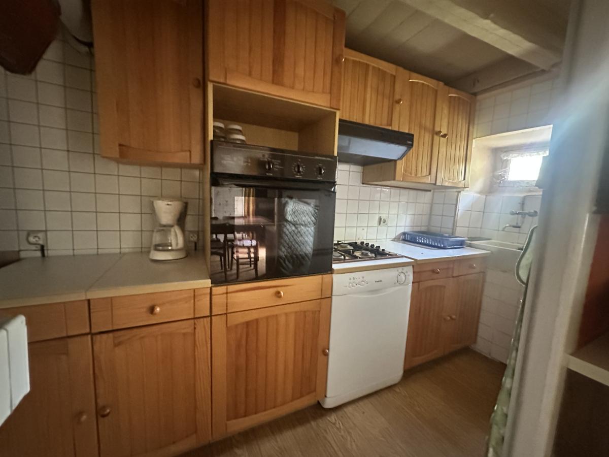- Au rez-de-chaussée, une salle à manger avec cuisinière à fuel, une cuisine, une chambre, un second espace nuit et une salle d'eau avec wc.