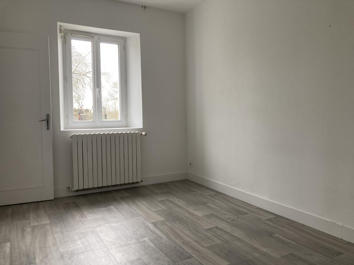 Une maison d'environ 73 m² comprenant une cuisine, une arrière-cuisine, un salon-séjour avec cheminée à insert, deux chambres, une salle de bains, des toilettes et une chaufferie.
