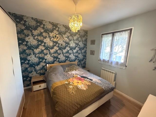 - Au rez-de-chaussée : entrée, wc, une chambre, cuisine aménagée et équipée, salle-salon avec poêle à bois