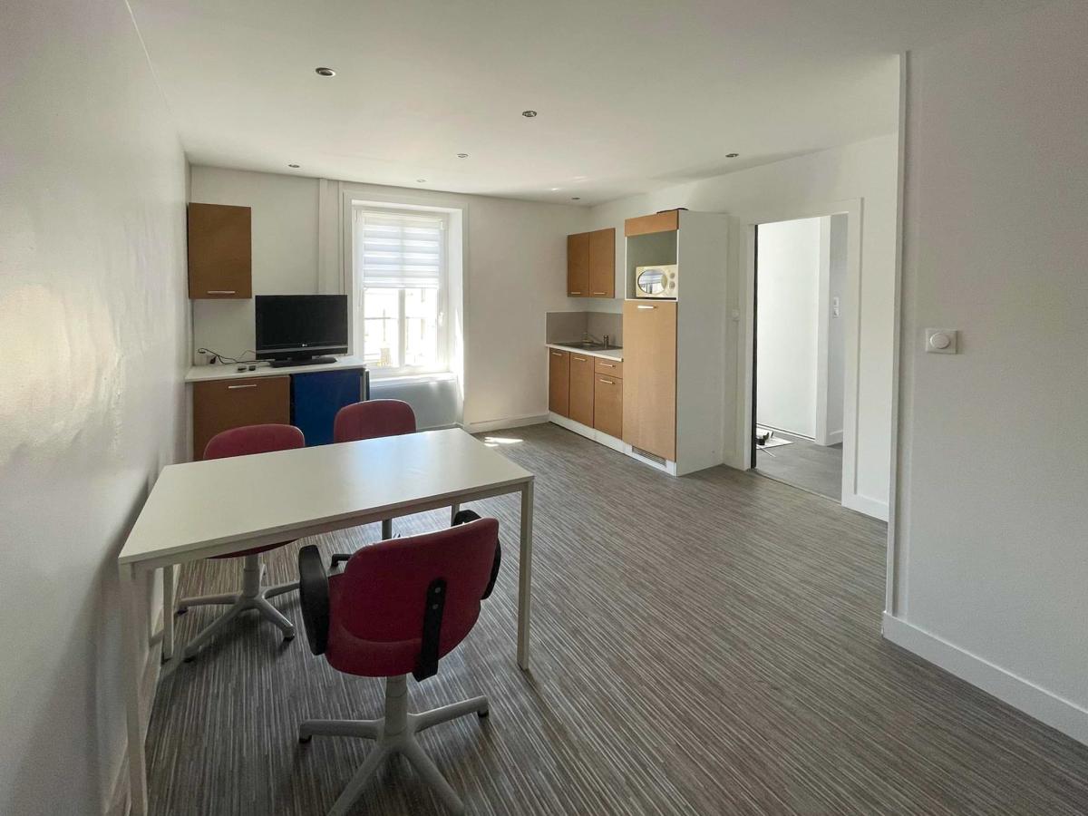 À l’étage, un appartement rénové permet d’allier lieu de travail et logement ou de prévoir un hébergement complémentaire. Des sanitaires seront à créer.