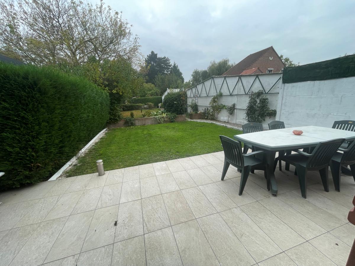 Tourcoing proximité rue de Roncq maison individuelle briques avec garage et beau terrain (346m2 total) composée d'un salon séjour, cuisine, sdb, 3 chambres à l'étage. Garage 1 véhicule et parking devant.