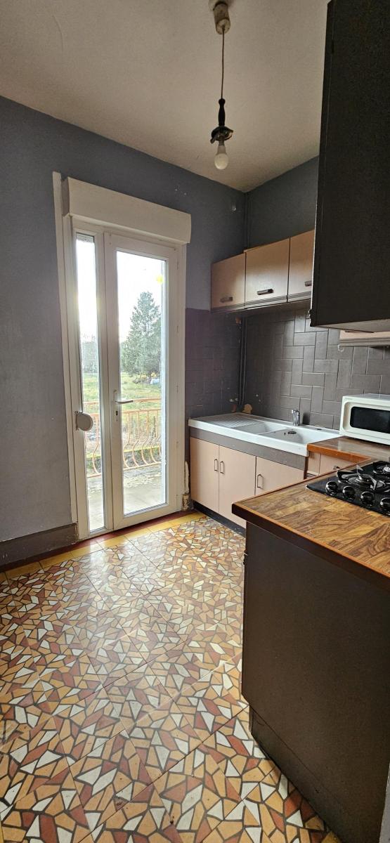 RDC : Entrée, cuisine avec accès balcon terrasse, séjour, wc
