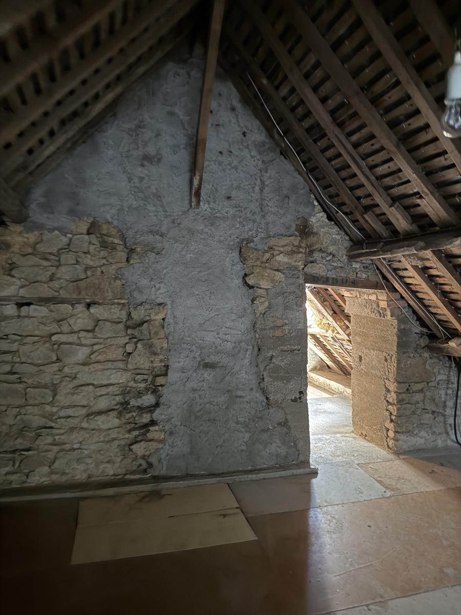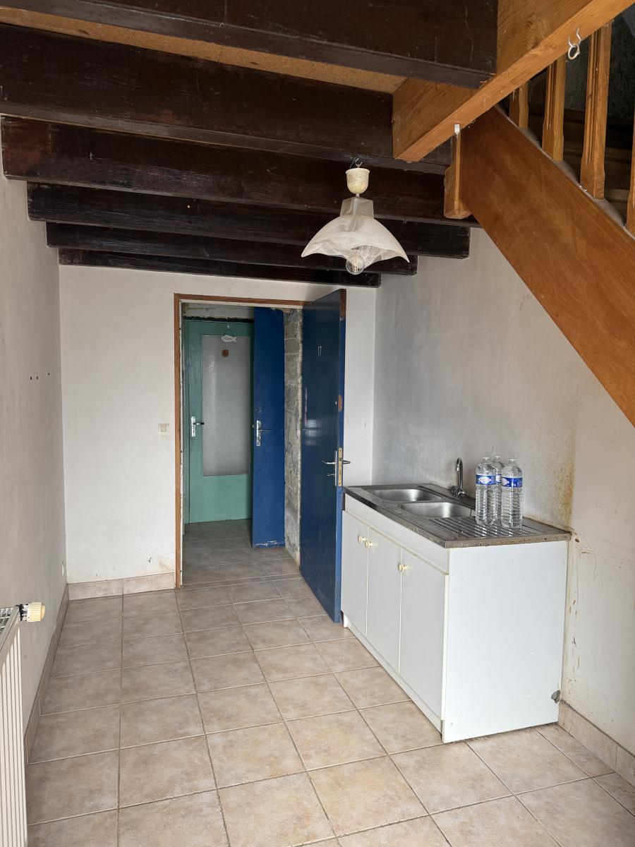 Sur terrain de 1040 m2, jolie maison en pierres, indépendante, sous ardoises et comprenant au rez-de-chaussée : Cuisine, salon, une chambre. A l'arrière, wc, salle d'eau et débarras. Grenier au-dessus. En appentis, garage d'un côté avec espace chaufferie, cellier de l'autre. Dépendance en parpaings.