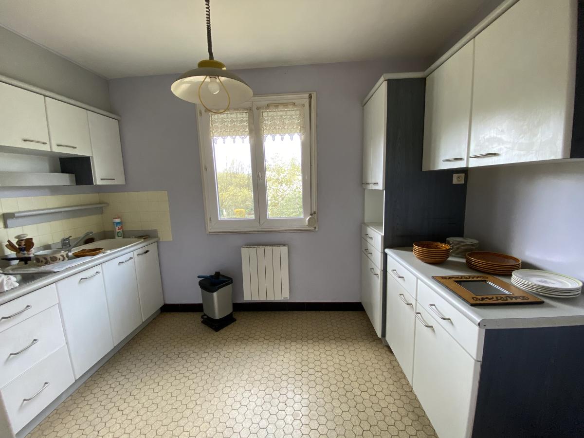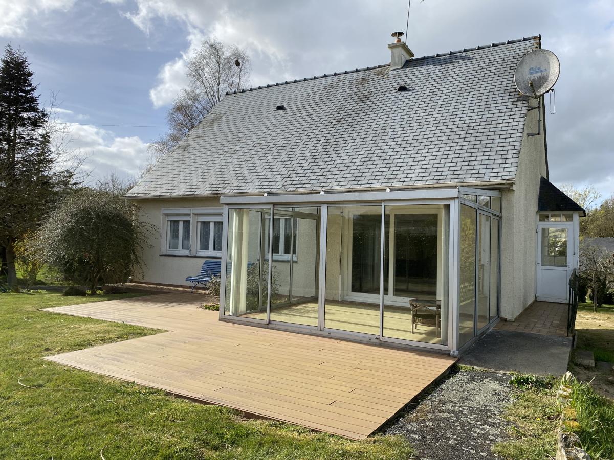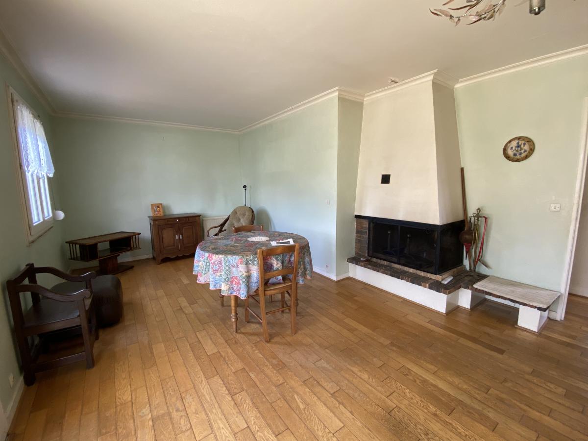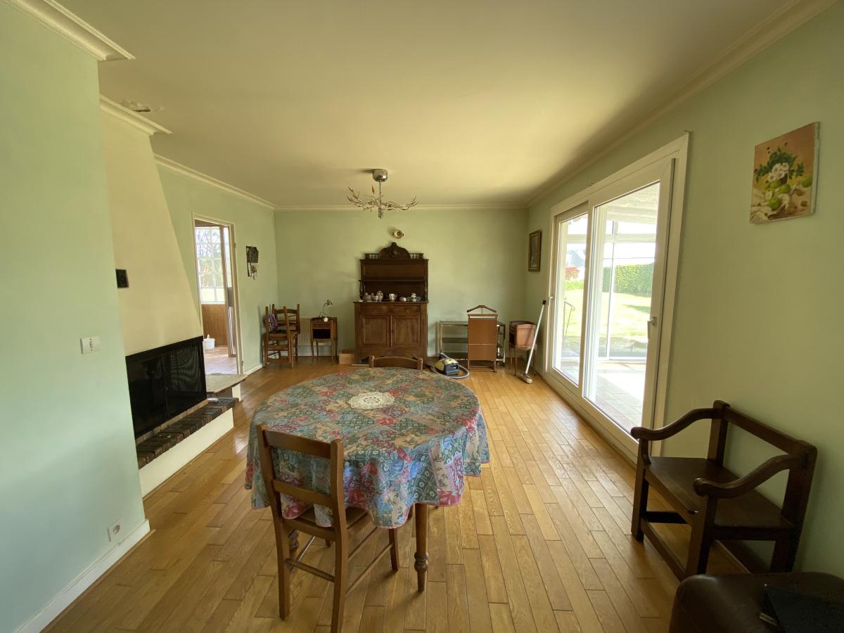 Sas vitré, séjour-salon avec cheminée à foyer ouvert, véranda, cuisine aménagée, wc, salle d'eau, trois chambres.