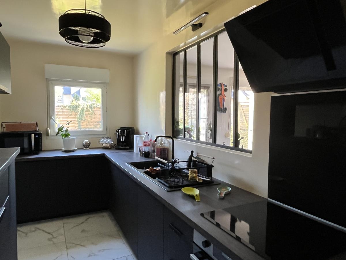 Bourg tous commerces et école, maison comprenant au rez-de-chaussée : entrée, séjour salon donnant sur jardin, cuisine aménagée, cellier. A l'étage : deux chambres, salle de bains, dressing.
